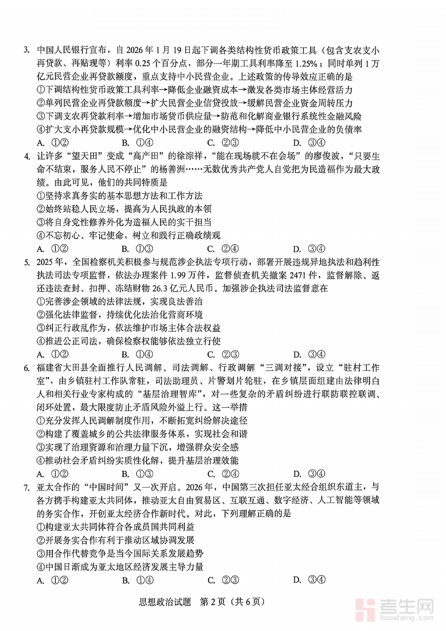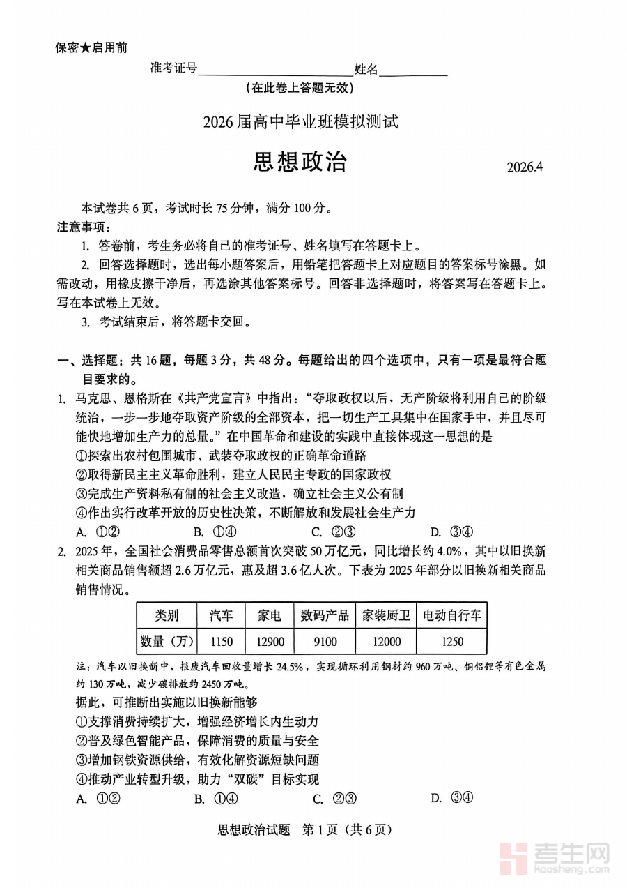 《厦门市2026届高中毕业班模拟测试 政治》是厦门市针对2026届高中毕业生推出的政治学科模拟测试资料,属于区域性高中毕业班阶段备考的重要参考材料。该测试贴合当地高中政治教学实际与高考命题方向,旨在为毕业生提供贴近真实考试情境的练习机会,帮助他们熟悉考试流程与要求,是高三阶段政治学科复习进程中的关键辅助资源。
