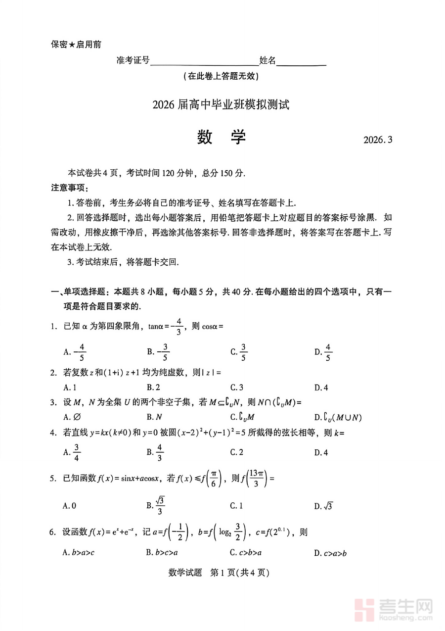 该资料主要适用于厦门市2026届高中毕业班学生,同时也为数学教师提供了实用的教学评估工具。对学生而言,参与测试能提前适应毕业阶段测试的节奏与难度,增强应试信心;对教师而言,测试结果可作为优化教学方案、制定个性化辅导计划的重要依据。整体来看,该模拟测试在毕业年级备考过程中具有显著的阶段性指导价值,助力师生更高效地推进复习任务。