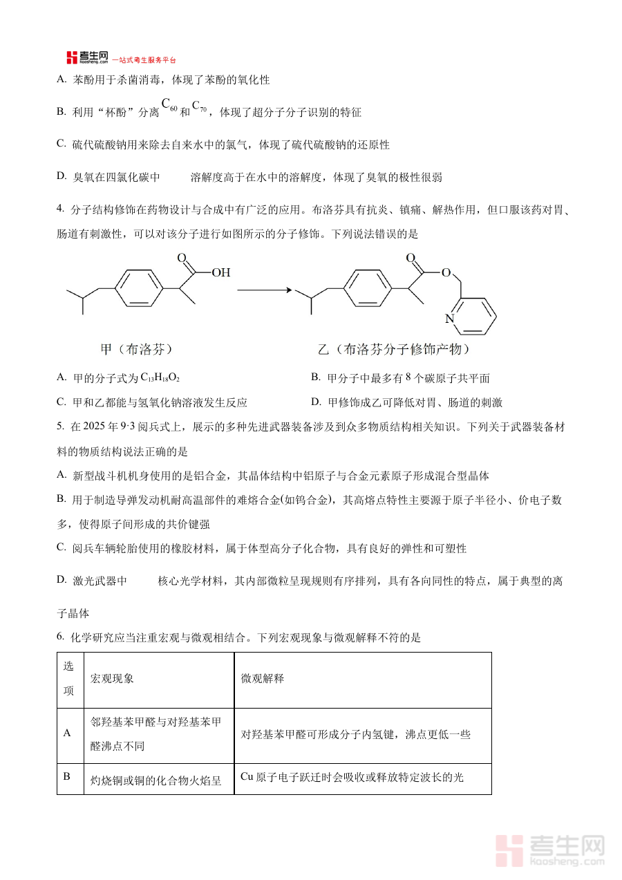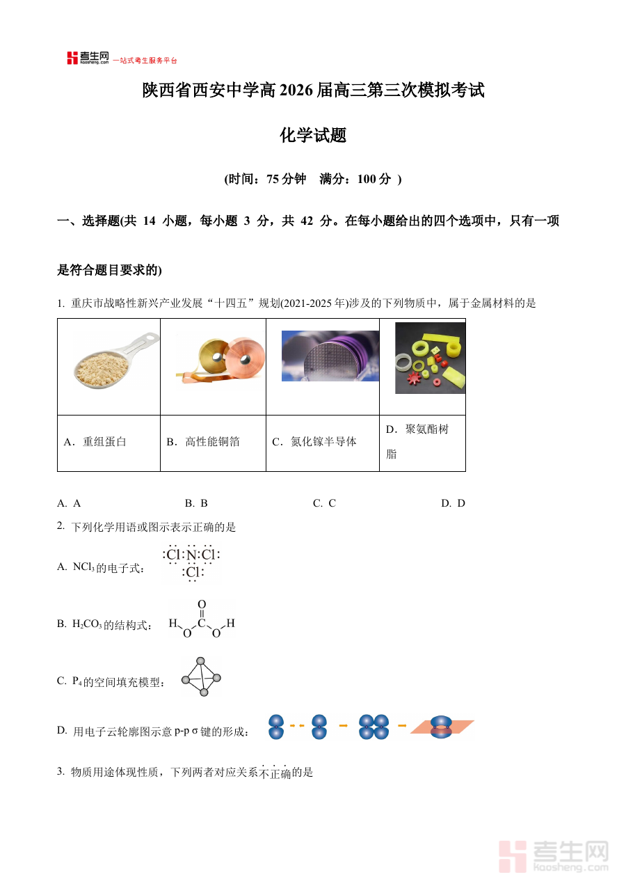 此试卷的适用人群为2026届陕西西安中学高三学生及化学学科教师。对于学生而言,参与此次测试可有效巩固阶段所学化学知识、提升应试能力;对于教师而言,则能借助测试结果优化教学策略、强化辅导精准度,共同助力高三化学备考效率的提升。