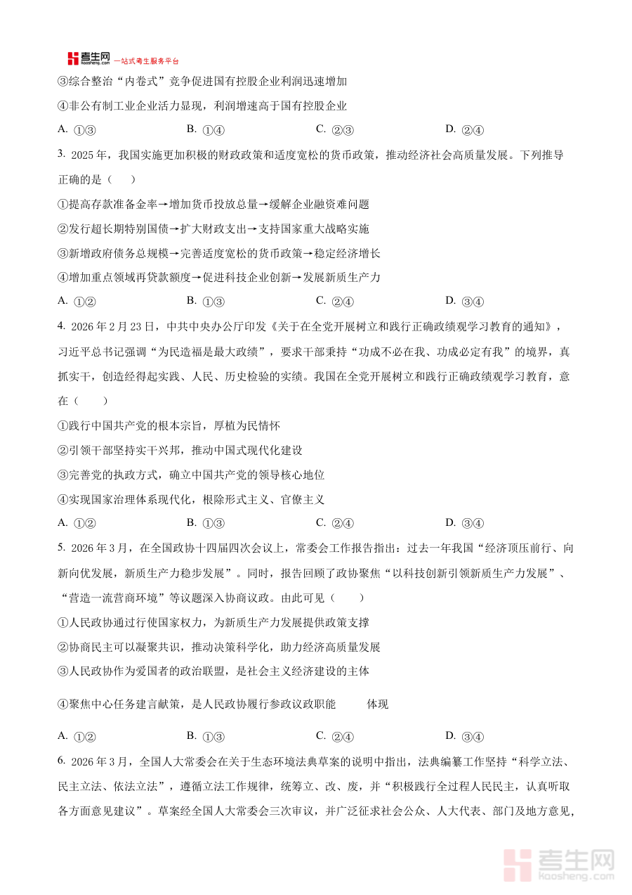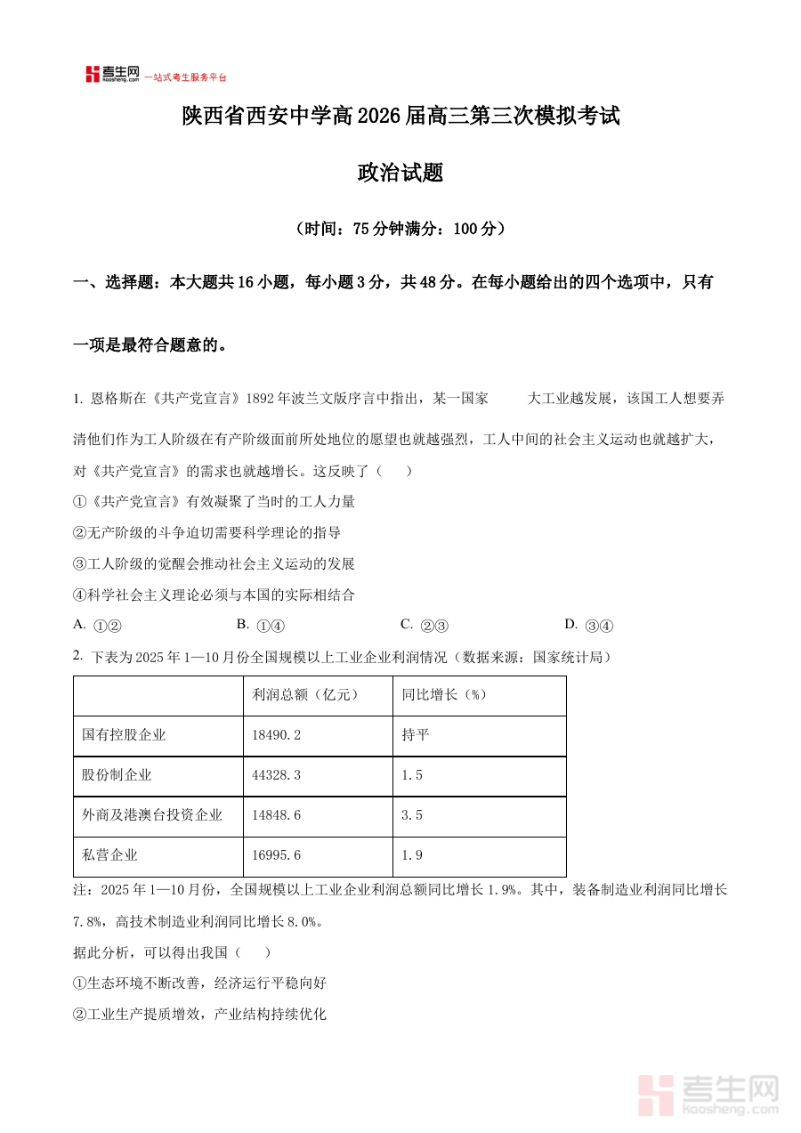 《2026届陕西西安中学高三下学期第三次模拟考试政治试卷 Word版无答案》是面向2026届陕西省西安市西安中学高三学生推出的阶段性模拟考试资料,属于高三下学期复习进程中的关键检测载体,紧密贴合该校政治学科的教学进度与复习重点,为学生提供与学校教学要求相匹配的模拟练习机会。