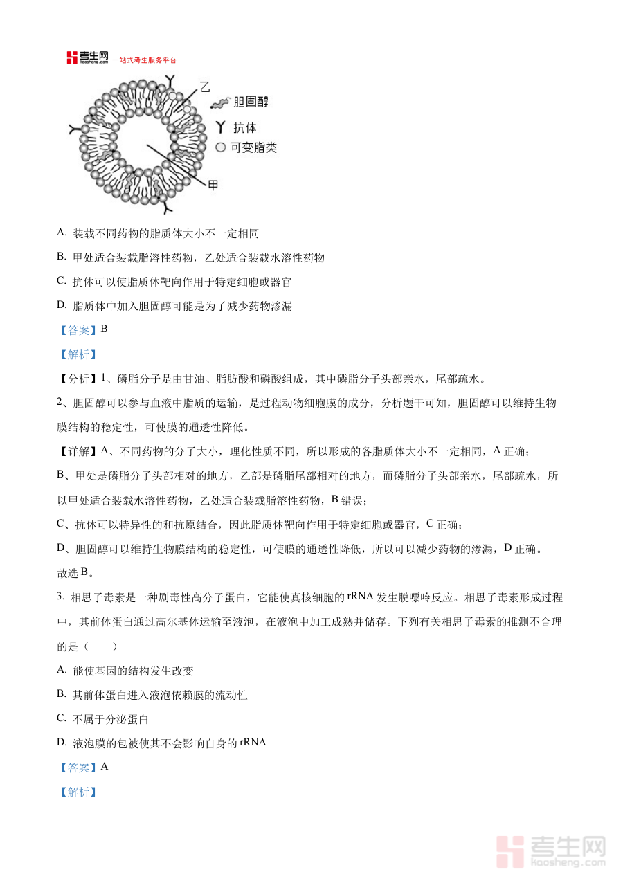 该资料可用于高三学生开展生物学科的阶段学情诊断,帮助学生清晰认知自身在生物知识掌握、解题思维等方面的现状;同时为教师提供教学反馈依据,助力教师优化后续教学计划与备考指导方向;其附带的详细解析能帮助学生梳理答题逻辑、深化知识理解,提升备考的针对性与有效性。