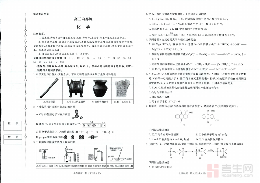该资料作为内部练习试卷,主要用于高三下学期中期阶段的学情诊断与学习效果评估。通过练习过程与结果反馈,能够帮助教师和学生及时掌握化学学科的学习进展,发现知识掌握中的薄弱环节,为后续的备考规划调整提供客观数据支持和科学参考依据。