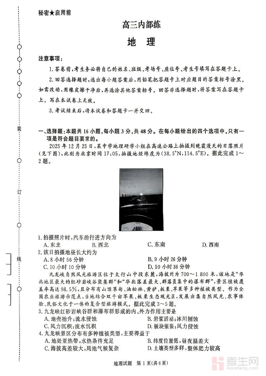 该资料可用于高三学生地理学科的学情诊断,帮助师生精准把握当前阶段的学习成效与知识薄弱点,为后续备考规划提供数据支撑与方向指引,同时也能模拟真实考试场景,提升学生的应试适应能力与时间管理能力。