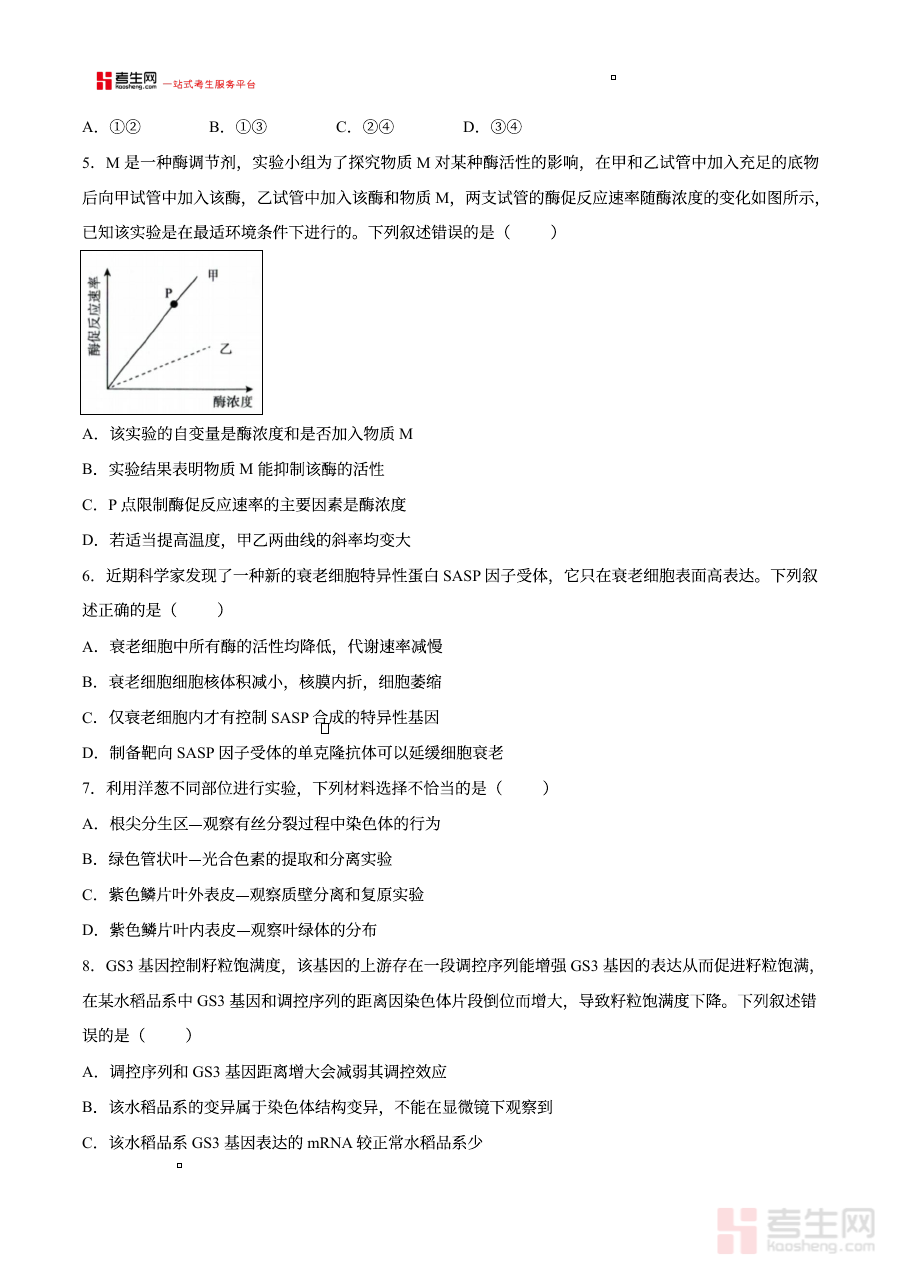 该试卷主要用于学校及教师对学生生物学科复习情况进行精准学情诊断,通过练习结果清晰掌握学生对核心知识点的理解深度、知识体系的构建完整性以及解题能力的实际水平。同时,它也能为学生的个性化备考规划提供可靠依据,让学生明确自身在生物学科上的优势领域与薄弱环节,从而针对性调整复习策略,提升复习的针对性与有效性。