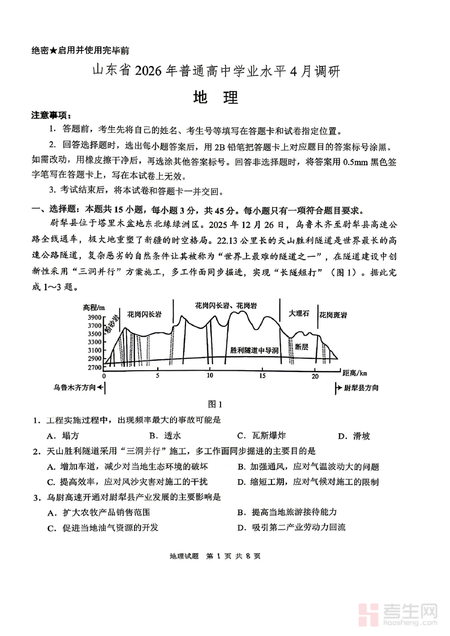 《山东省2026届普通高中学业水平4月调研地理试卷(含答案)》是面向山东省2026届普通高中学生推出的学业水平调研类地理学科资料,聚焦该学年4月份的阶段性学业水平检测需求,为使用者提供贴合本省普通高中地理学业水平考试方向的实践载体。作为针对学业水平的调研资料,它紧密结合山东省普通高中地理学业水平考试的相关标准与要求,通过标准化的调研试卷形式,帮助使用者初步把握学业水平考试的基本命题方向与核心考查要点,为后续的学习与备考奠定基础。
