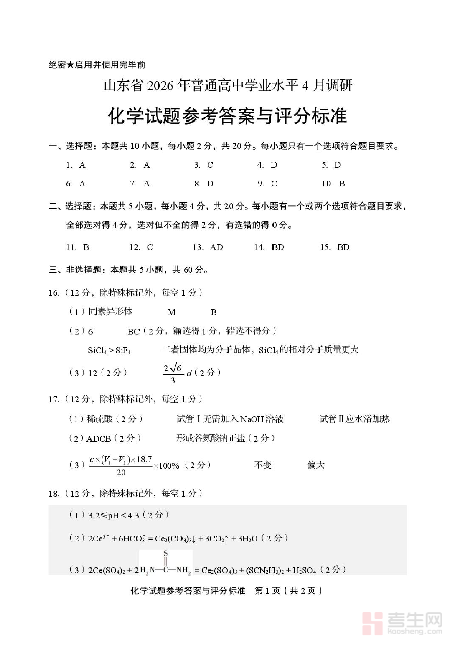 《高考备考资料_化学答案》是针对高考化学科目设计的配套备考辅助资料,旨在为高考化学复习阶段的考生提供精准、规范的参考答案支持。作为高考化学备考体系中的重要组成部分,该资料与相应的备考练习内容紧密匹配,能够帮助考生在日常复习或阶段练习后及时核对解题思路与结果,确保复习方向的准确性,为后续的知识巩固与能力提升奠定基础。