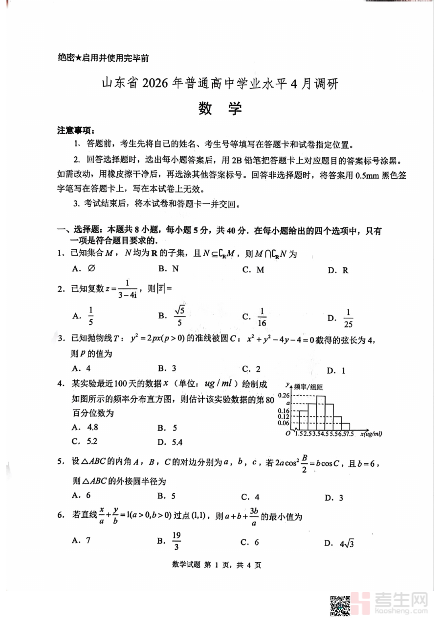 《山东省中学联盟4月调研考试数学》是面向山东省中学联盟成员学校的数学学科阶段性调研考试配套备考资料。该资料基于联盟统一的教学进度与评估标准设计,紧密围绕4月份调研考试的性质与目标,为参与考试的师生提供符合区域教学实际的学习参考工具。其明确的区域属性与阶段性特征,使其成为联盟内学校开展数学学科阶段评估的重要辅助资源。
