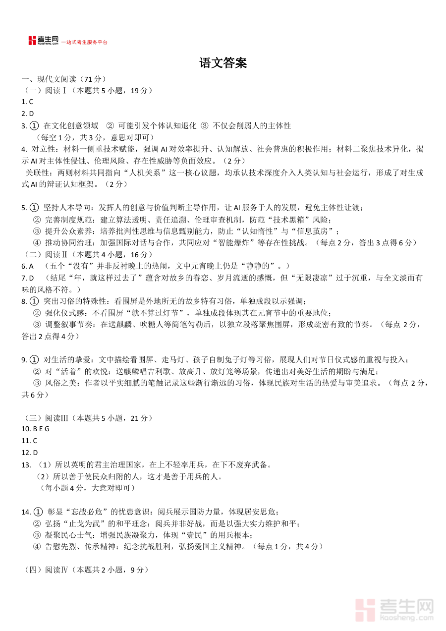 《江西省八所重点中学2026届高三联考 语文答案》是针对江西省内八所重点中学联合举办的2026届高三年级语文联考所配套的答案资料。该考试属于区域性重点中学间的阶段性联合检测,旨在通过统一命题和测评标准模拟高考场景下的语文考查要求,为高三学生提供高质量的阶段性训练机会。作为联考核心配套内容之一,这份答案资料能帮助使用者快速核对考试结果,明确官方认可的答题规范与评分标准。