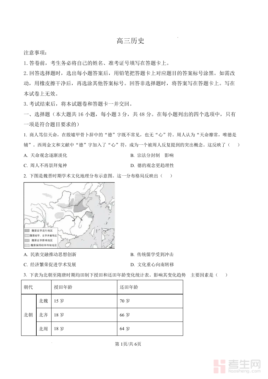 该资料可用于高三历史学科的阶段性学情诊断,帮助学生及时发现学习中的薄弱环节,也为教师提供教学效果反馈依据,辅助调整后续教学计划与备考指导方向,同时助力学生在高考备考进程中进行阶段性知识巩固与能力提升。