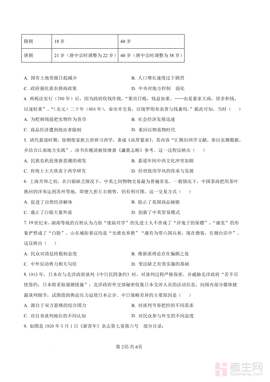 本试卷适用于雅礼中学2026届高三学生进行历史学科的阶段性检测,也可为其他同年级、同备考阶段的历史学习者提供参考。通过完成该试卷,学生能够有效检验近期历史知识的掌握程度与应用能力,为后续高考历史备考规划提供数据支持,助力其更有针对性地开展复习工作。