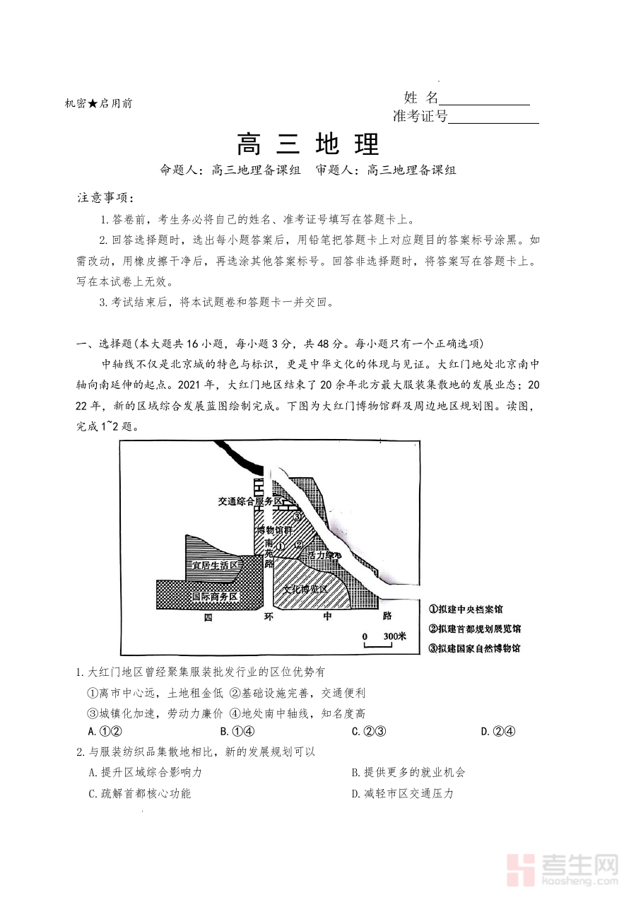 该试卷主要适用于2026届高三学生群体,尤其适合需要进行阶段性知识巩固与能力提升的学生使用。通过完成这份试卷,学生可模拟真实考试场景积累应试经验,强化地理学科核心素养;教师则可借助试卷结果进行教学反思提升针对性与有效性,共同为高考地理备考奠定坚实基础,充分发挥阶段检测与备考规划的双重价值。