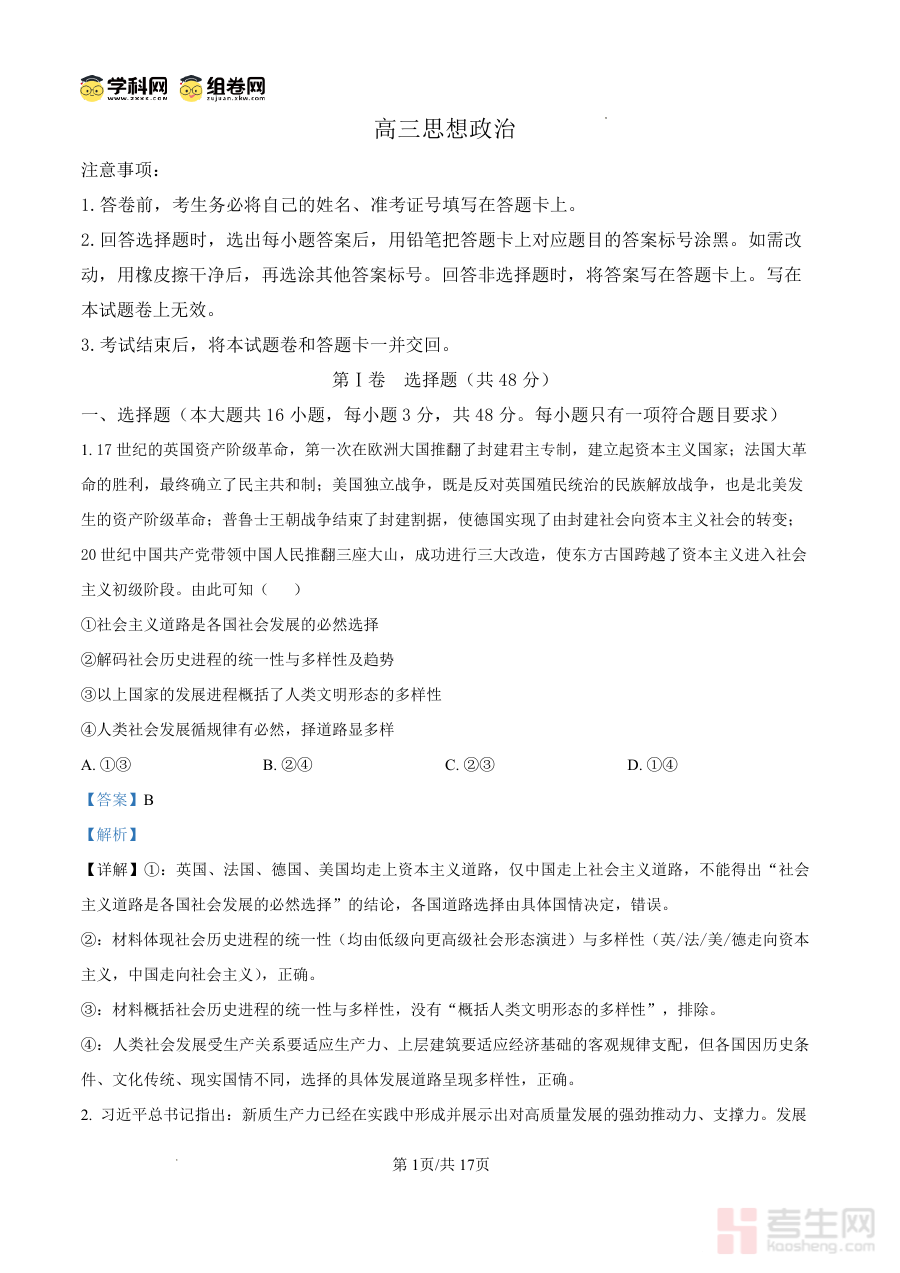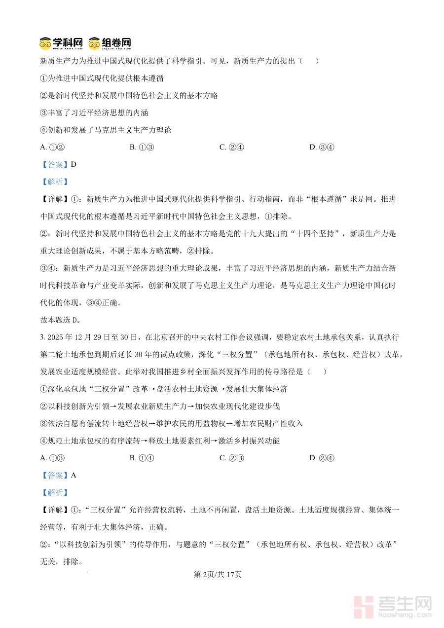 该资料适用于雅礼中学2026届高三学生及相关政治教师群体。对学生来说,它是阶段检测后查漏补缺、巩固知识体系的关键工具;对教师来说,它为阶段性教学效果评估和备考方向调整提供客观支撑。合理使用这份答案资料,能助力师生精准把握高三政治备考节奏,增强阶段复习的针对性与有效性,为高考冲刺阶段的学习奠定坚实基础。