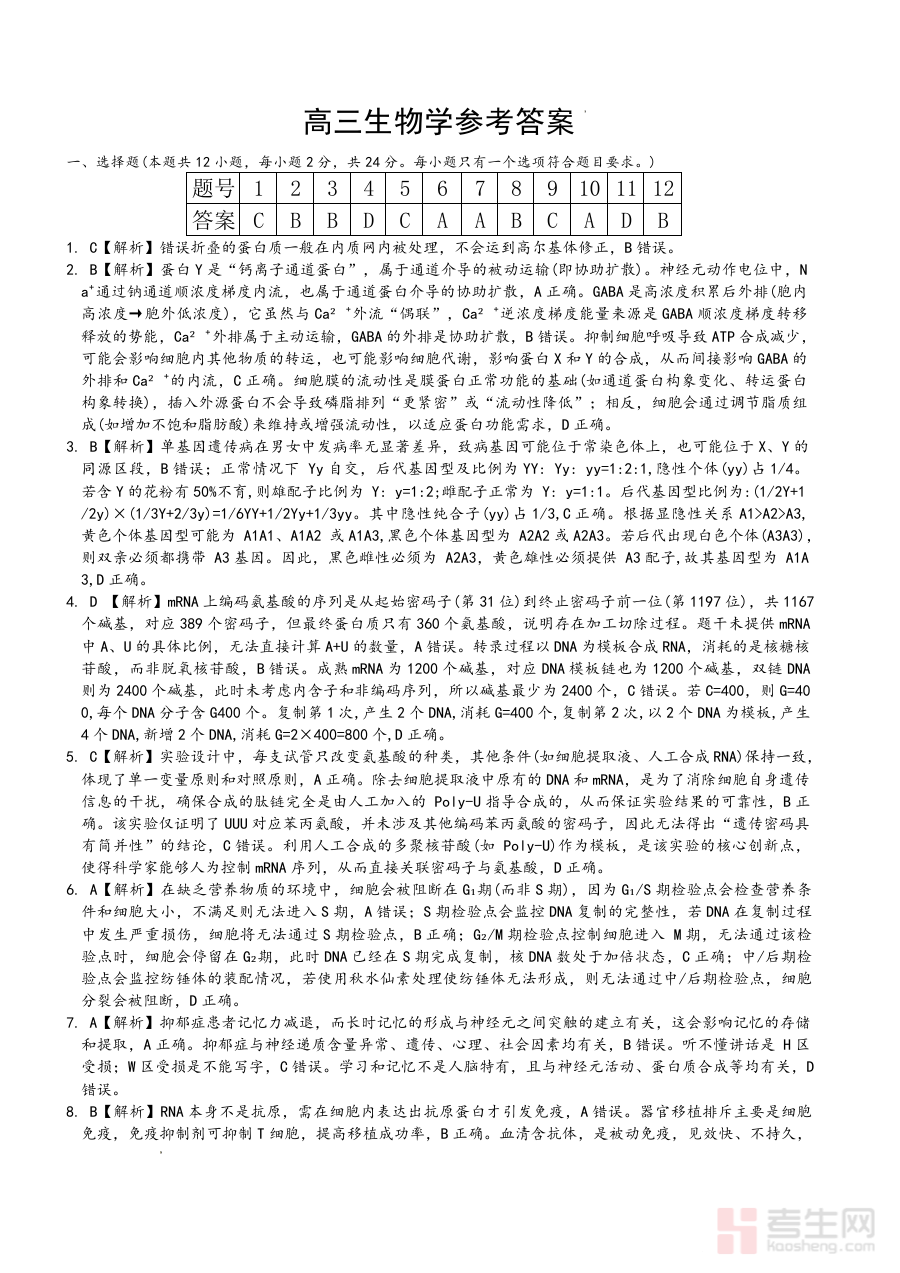 作为高三生物月考试卷的配套答案,该资料的核心用途在于支持阶段性学习效果的评估与反馈。它可以帮助学生自我检查生物学科知识的掌握情况,发现答题中的问题与不足;同时也能为教师提供学情分析的基础素材,辅助教师调整教学策略与复习重点,确保教学内容与学生当前的学习需求相匹配。