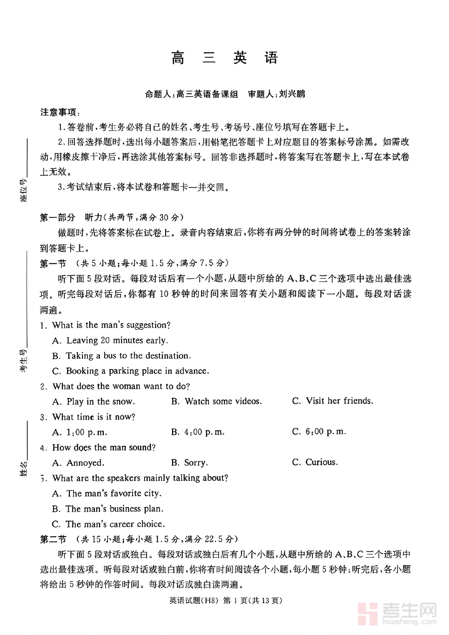 该资料作为高三英语学习的月度检测载体可有效帮助教师诊断学生在英语知识掌握技能运用等方面的实际情况同时让学生清晰认知自身学习中的优势与不足为后续教学计划调整及个人学习策略优化提供可靠依据助力师生在高考备考周期内实现精准高效的教与学