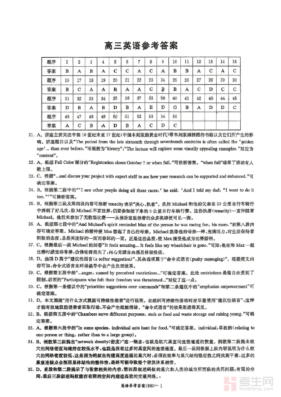 这份答案资料主要用于高三学生在完成第八次月考后进行自我评估与学情诊断,也可作为教师进行试卷讲评、分析班级整体答题情况的重要参考依据。通过对答案的对照分析,使用者能够及时发现自身在英语学习中的薄弱环节,为后续的针对性复习与备考规划提供数据支撑,助力优化学习策略。