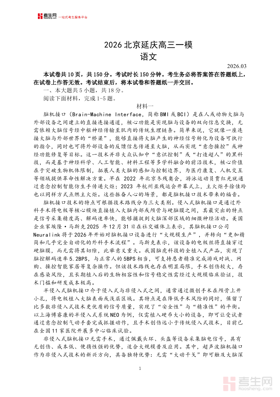 《2026届北京市延庆区高三一模语文试题(含解析)》是针对2026届北京市延庆区高三学生设计的阶段性语文备考资料,整合了该地区高三一模考试的语文试题及配套解析内容。它依托区域教育教学实际和高三复习阶段特点,为学生提供贴合本地考试要求的练习资源。