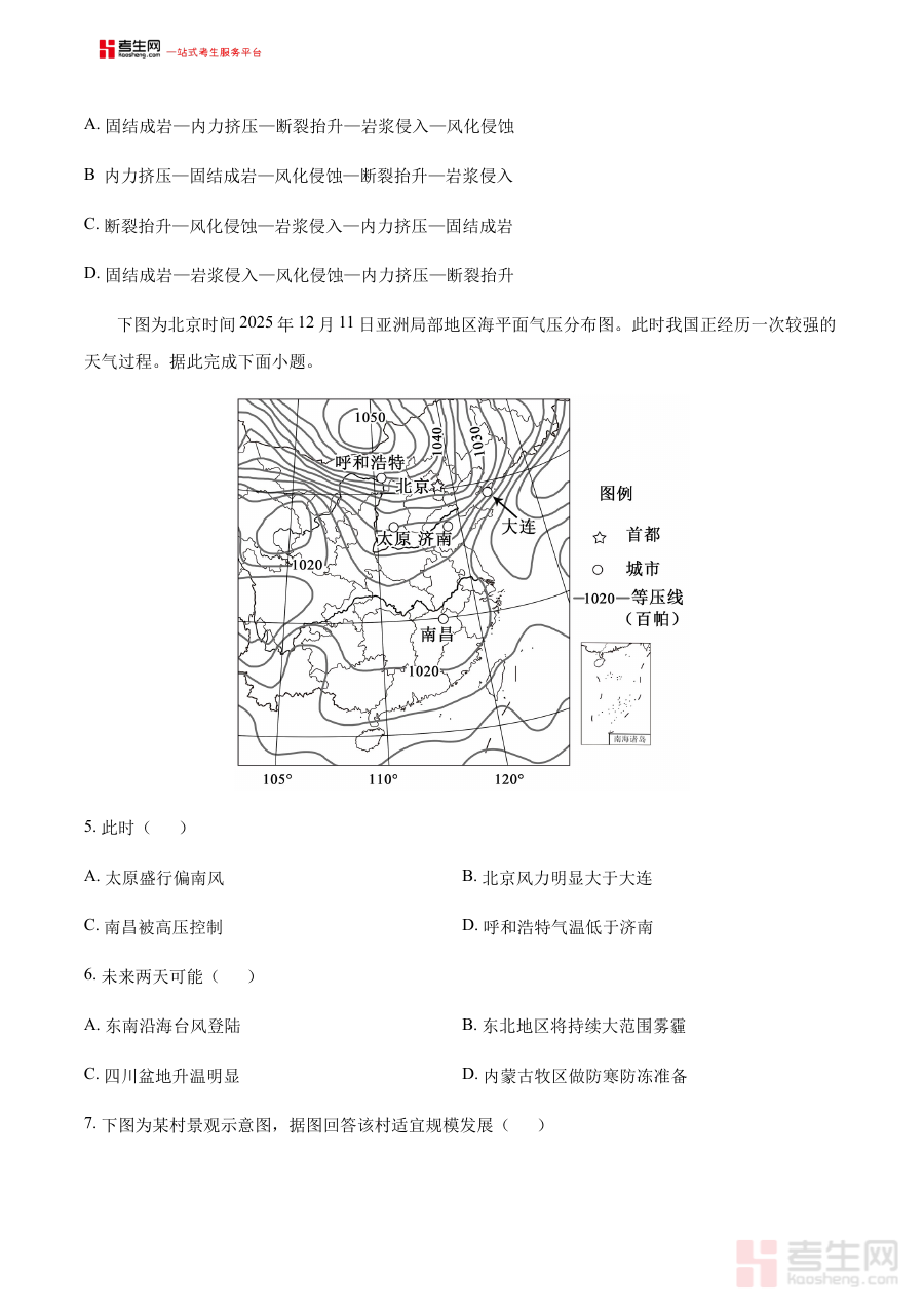 该资料核心适用人群为北京市延庆区2026届高三学生,是日常备考练习、阶段性自我检测的重要资源;本地高中地理教师可借助它开展课堂教学反馈与针对性辅导;参与该届学生备考指导的教辅人员也能利用这份资料完善辅导方案。合理使用该资料有助于师生精准把握备考方向,提升复习效率,为后续高考冲刺阶段做好充分准备。