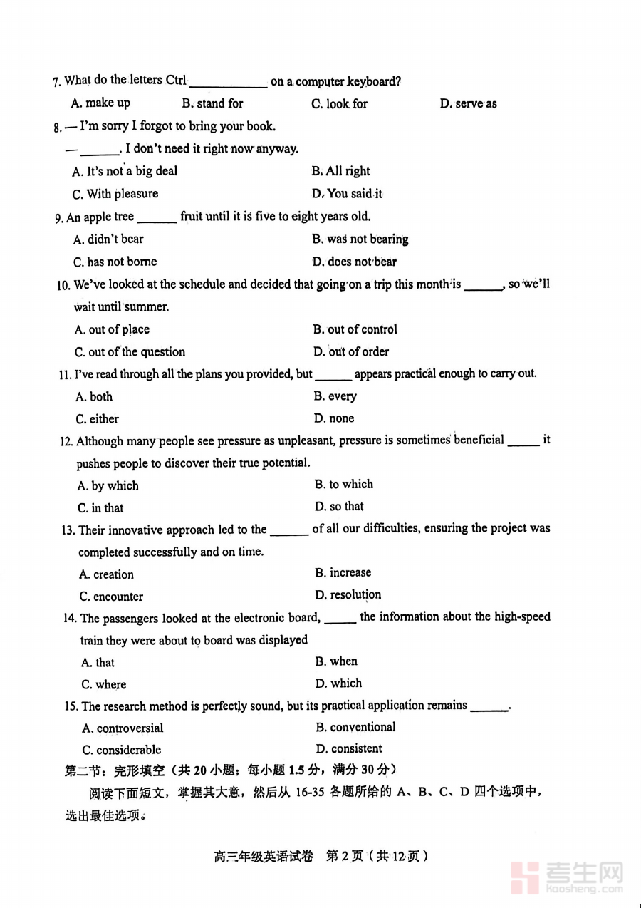 此资料可用于高三学生英语学科的学情诊断,帮助教师精准掌握学生当前的学习水平与知识掌握情况,为后续教学计划调整及备考策略优化提供数据支撑;同时也能让学生清晰认知自身在英语学习中的薄弱环节,针对性地制定个性化复习方案。