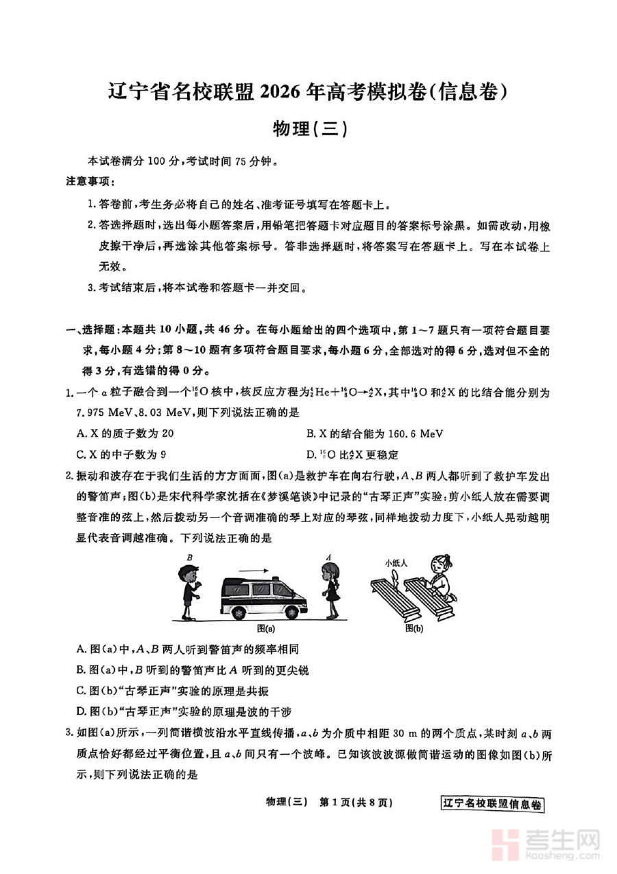 《辽宁省名校联盟2026届高三下学期高考模拟卷(信息卷)(三)物理试卷(含答案)》是针对辽宁省2026届高三学生推出的高考物理备考资料,由省内多所知名高中组成的名校联盟联合编制,属于高三下学期信息卷系列的第三套。该资料充分结合辽宁省高考物理的命题特点与区域教学实际,为学生提供了与高考难度、题型形式相契合的模拟训练内容,是高三阶段提升应试能力的重要备考辅助工具。