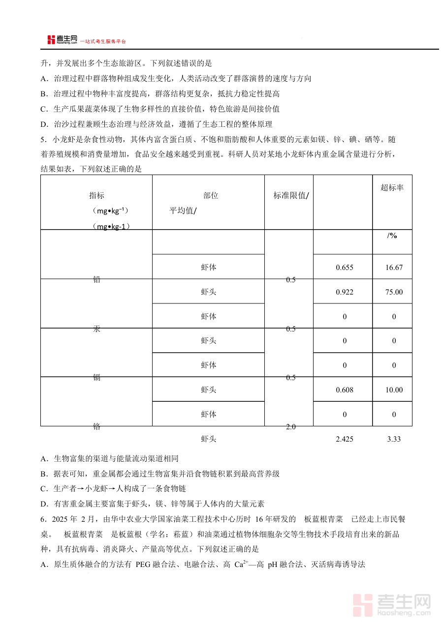 该试卷可有效用于考生的阶段性学情诊断工作,帮助考生清晰认知自身在生物学科知识体系中的薄弱环节;同时,其检测结果能够为考生制定个性化备考规划提供客观依据,助力考生优化复习重点与方法;此外,作为阶段检测工具,它能让考生在模拟训练中熟悉考试流程与时间分配技巧,提升应试能力与心理素质。