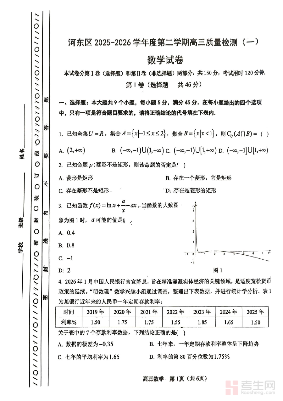 本试题适用于河东区25-26学年高三年级学生及相关教师群体。对于学生而言,它是高三上学期关键阶段的核心检测工具,能帮助其适应一模考试节奏与难度梯度,为后续复习明确重点方向;对于教师来说,它可作为阶段性教学效果评估的重要参考,辅助优化教学方案,共同推动学生数学学科能力的提升。