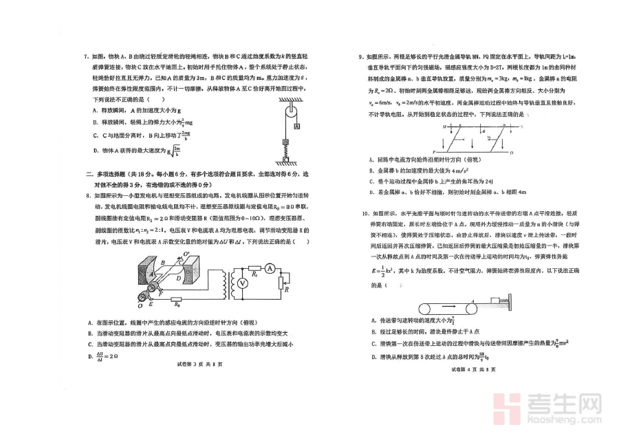 这份资料可用于高三学生物理学科的阶段学情诊断,能够帮助学生及时识别自身在知识掌握、解题思路等方面存在的薄弱环节;同时也可为教师调整教学计划、优化备考策略提供参考依据,还能让学生通过适应性训练熟悉考试流程与答题规范,逐步提升应试技巧与时间管理能力,为正式考试积累实战经验。