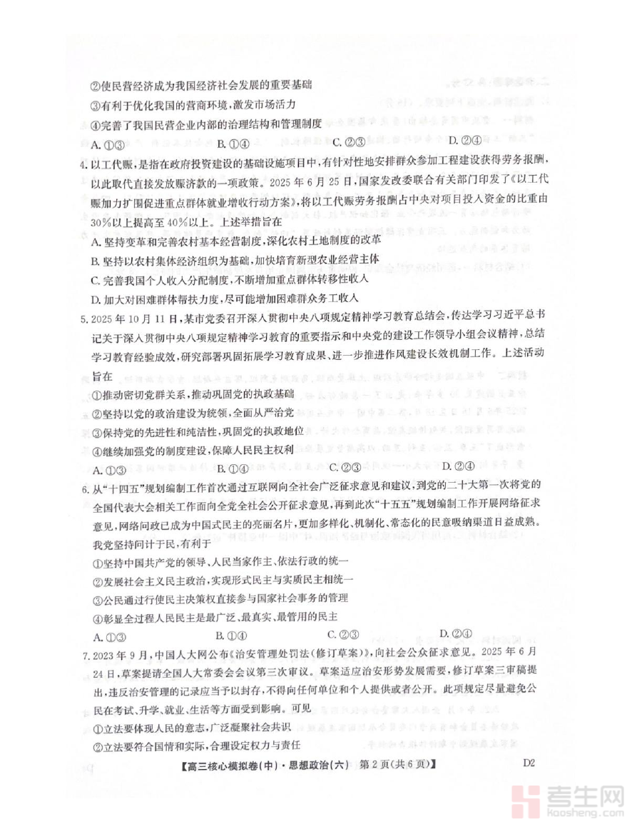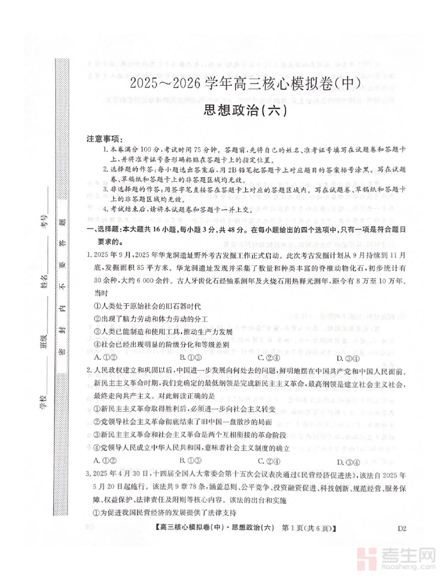 《2025-2026学年度普集高中高三模拟考试政治试题》是普集高中针对2025-2026学年度高三学生政治学科设计的阶段性模拟测试资料,依托学校高三政治教学进度与核心目标打造,贴合本校教学实际需求,为学生提供贴近真实考试场景的模拟体验,帮助学生提前适应高三政治考试的形式与节奏,为后续系统备考筑牢基础。