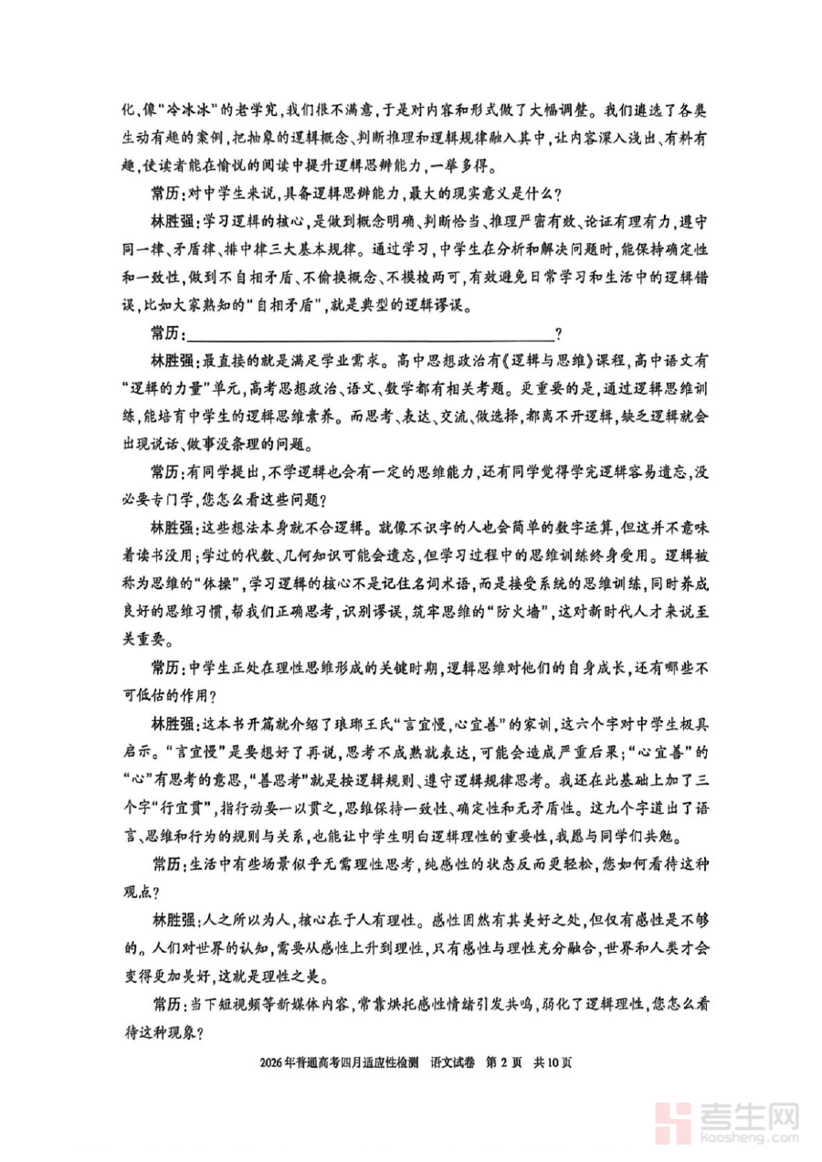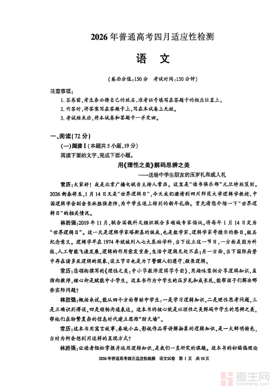 《新疆2026年普通高考四月适应性检测语文试卷及答案 新疆2026年普通高考四月适应性检测语文试卷》是面向新疆地区2026届普通高考考生的语文科目阶段性检测资料,包含试卷与配套答案两部分内容。作为高考前重要的适应性训练材料,它严格贴合新疆普通高考语文科目的命题方向与考查要求,为考生营造接近正式高考的答题环境,助力考生提前适应考试的时间安排、作答规范与整体流程。