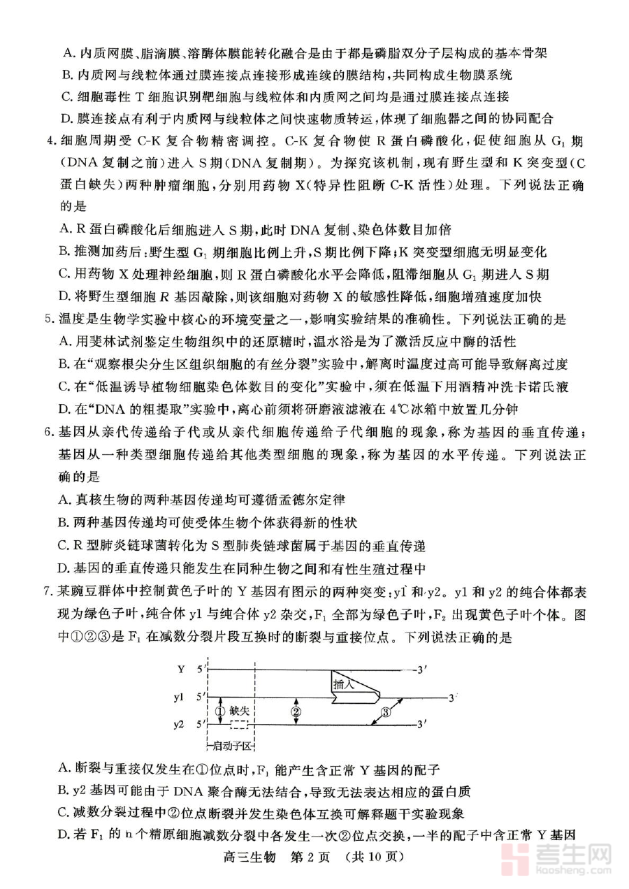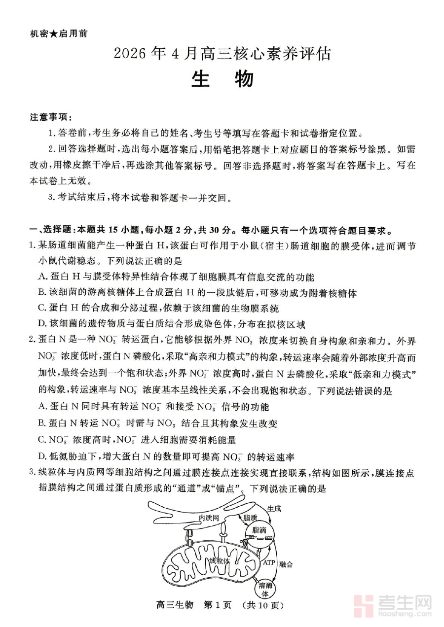 本资料适用于2026届山东省东营市胜利第二中学及参与本次核心素养评估的其他学校的高三学生,以及从事高三生物教学的教师群体。它通过规范的评估形式,助力学生巩固阶段所学内容,提升生物学科核心能力,也为教师提供了有效的教学反馈依据,有助于师生共同推进高三生物备考的高效开展。