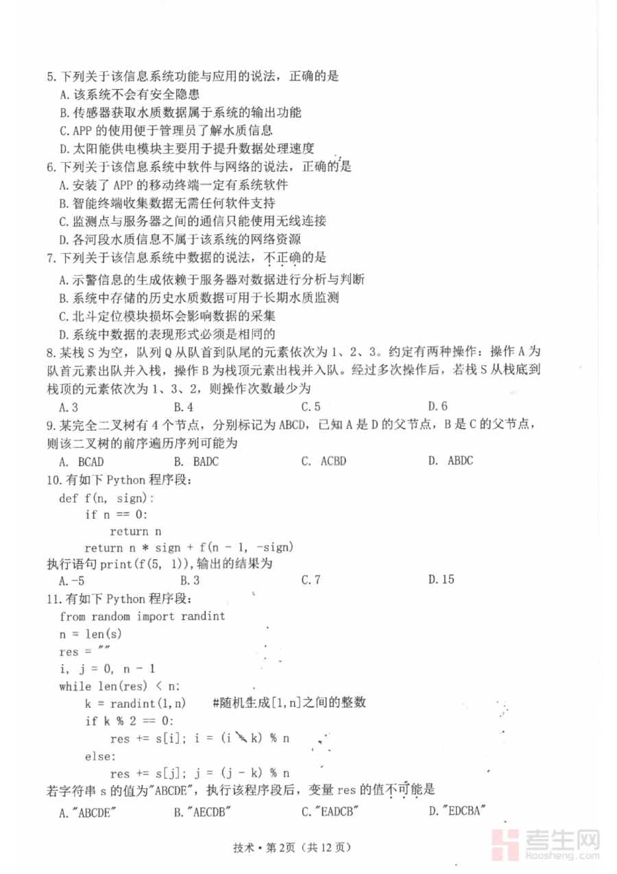 这份试题卷可作为高三学生进行阶段学情诊断的工具,通过完成试题能让学生清晰了解自身在技术学科上的学习状况,同时也为教师调整教学策略、制定后续备考规划提供数据支撑,有效助力阶段性学习成果的评估与提升。