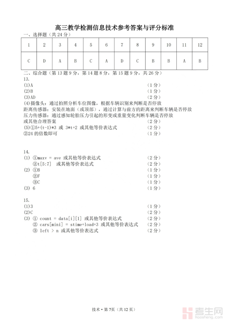这份答案资料可辅助高三学生及教师对技术学科的阶段性学习效果进行精准评估,帮助学生及时发现知识掌握中的薄弱环节并进行针对性补强,也为教师调整教学策略、优化备考指导方向提供数据支持与实践参考,助力提升整体备考工作的针对性与有效性。