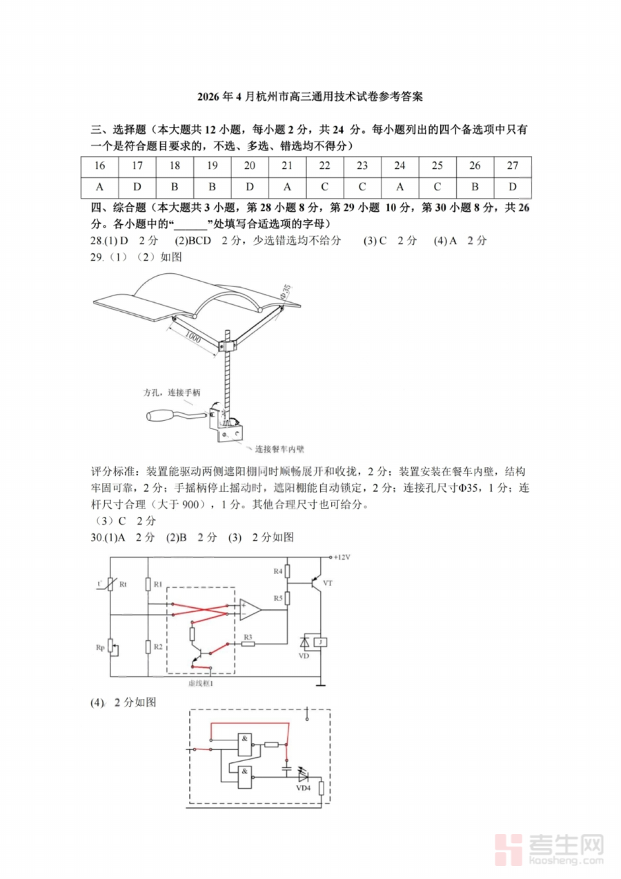 该资料适用于参加本次杭州二模的高三学生以及指导高三技术学科教学的教师群体,通过对答案的分析与应用,学生可明确答题规范、梳理解题思路,教师可借助其开展学情诊断与教学反思,为后续高考冲刺阶段的备考规划提供重要支撑,有效发挥阶段检测的反馈价值与备考指导作用。