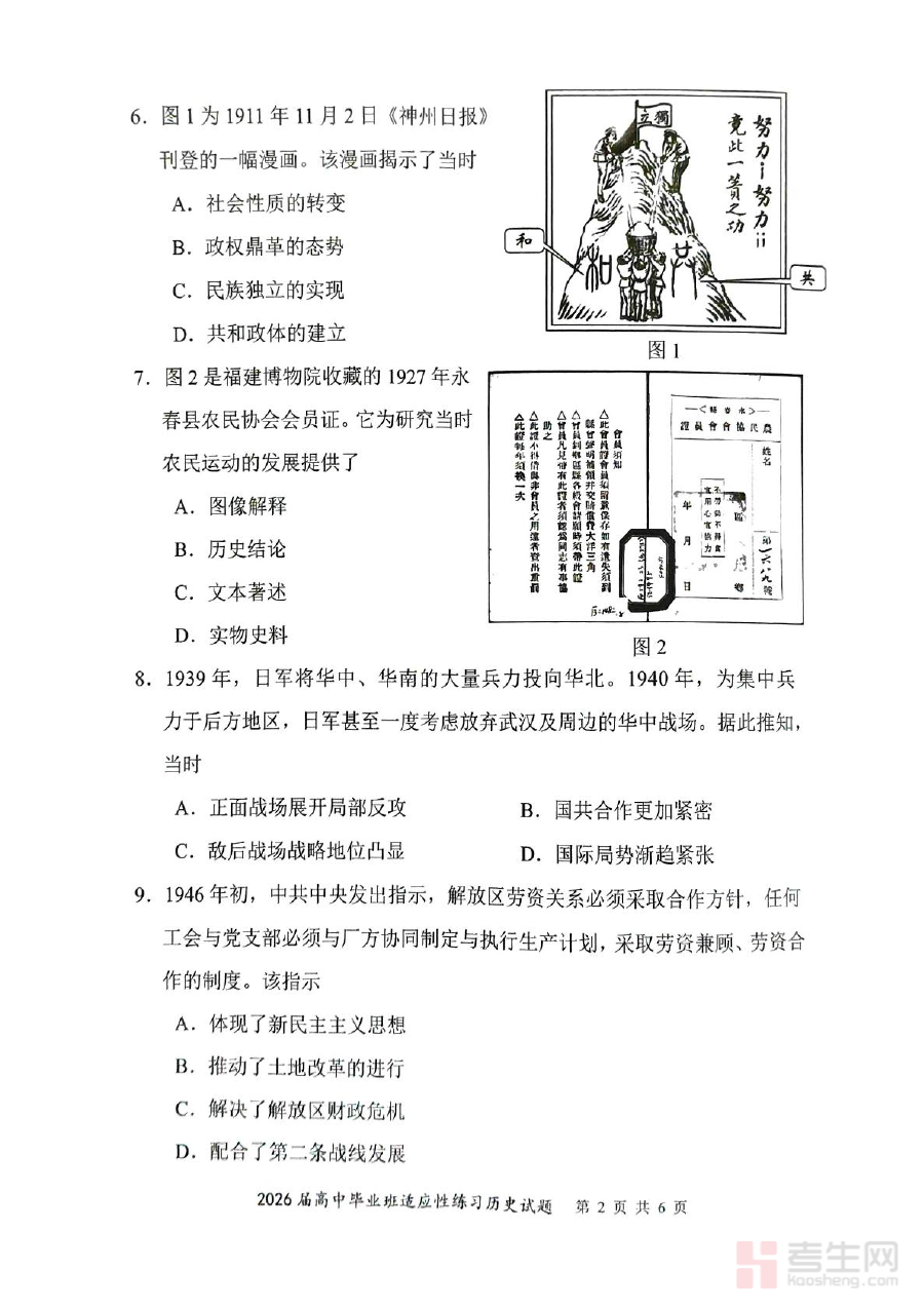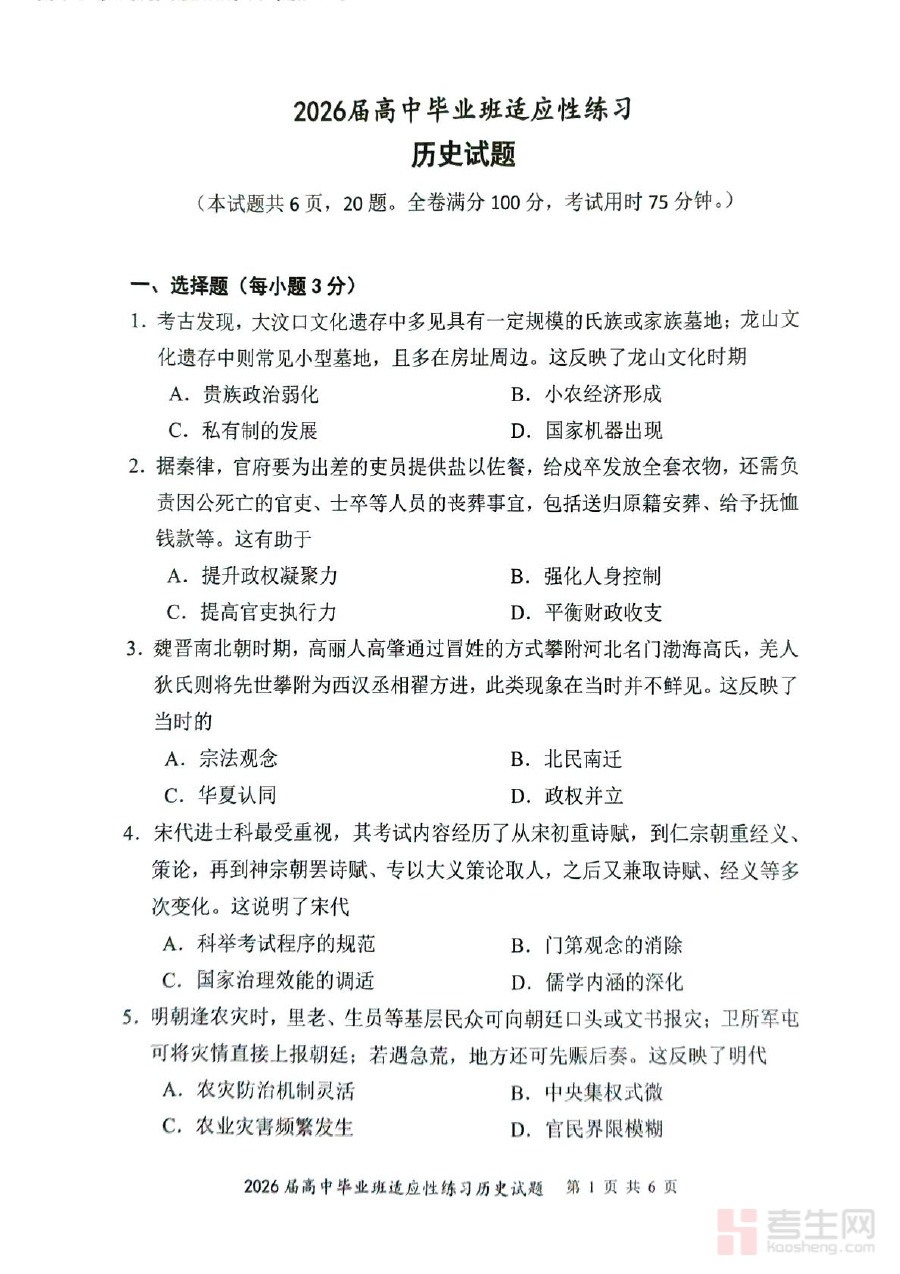 《2026届高中毕业班适应性练习历史试题》是针对2026届高中毕业生设计的历史学科适应性练习资料,属于高中毕业阶段的重要备考资源之一。它旨在帮助学生提前熟悉高中毕业相关考试的命题方向与考查形式,为后续的系统复习和针对性提升奠定基础,是衔接日常学习与最终备考的关键过渡性资料。