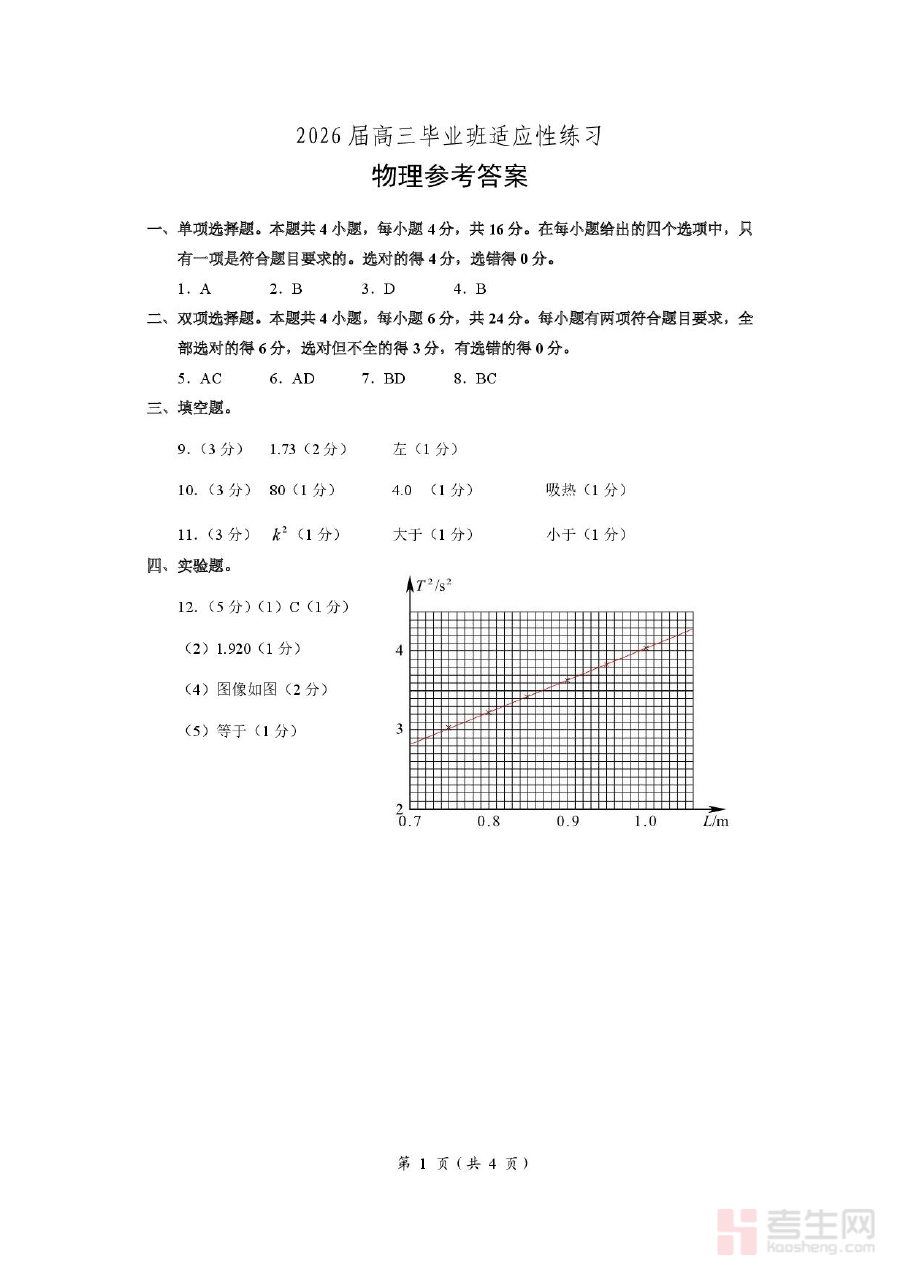 《2026届福建高三4月省质检物理答案》是2026届福建省高三学生在4月份参加省级质量检测物理科目考试后的配套答案资料。作为福建省教育部门组织的阶段性检测的重要组成部分,该答案严格遵循本次省质检物理科目的考查要求与评分细则,为考生和教学工作者提供了准确的作答参考与评分依据,是高三物理备考阶段不可或缺的辅助资源之一。