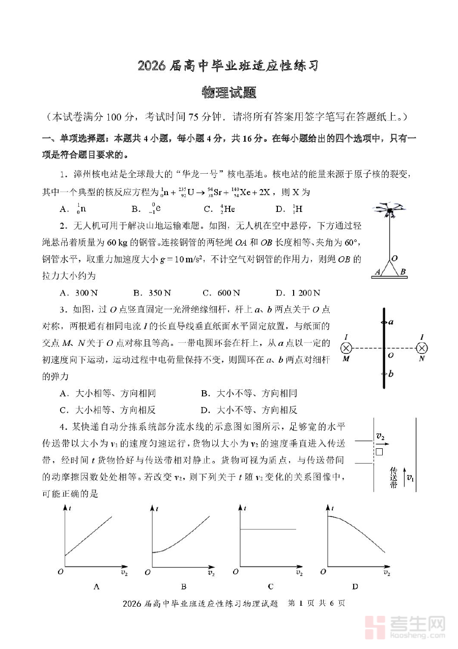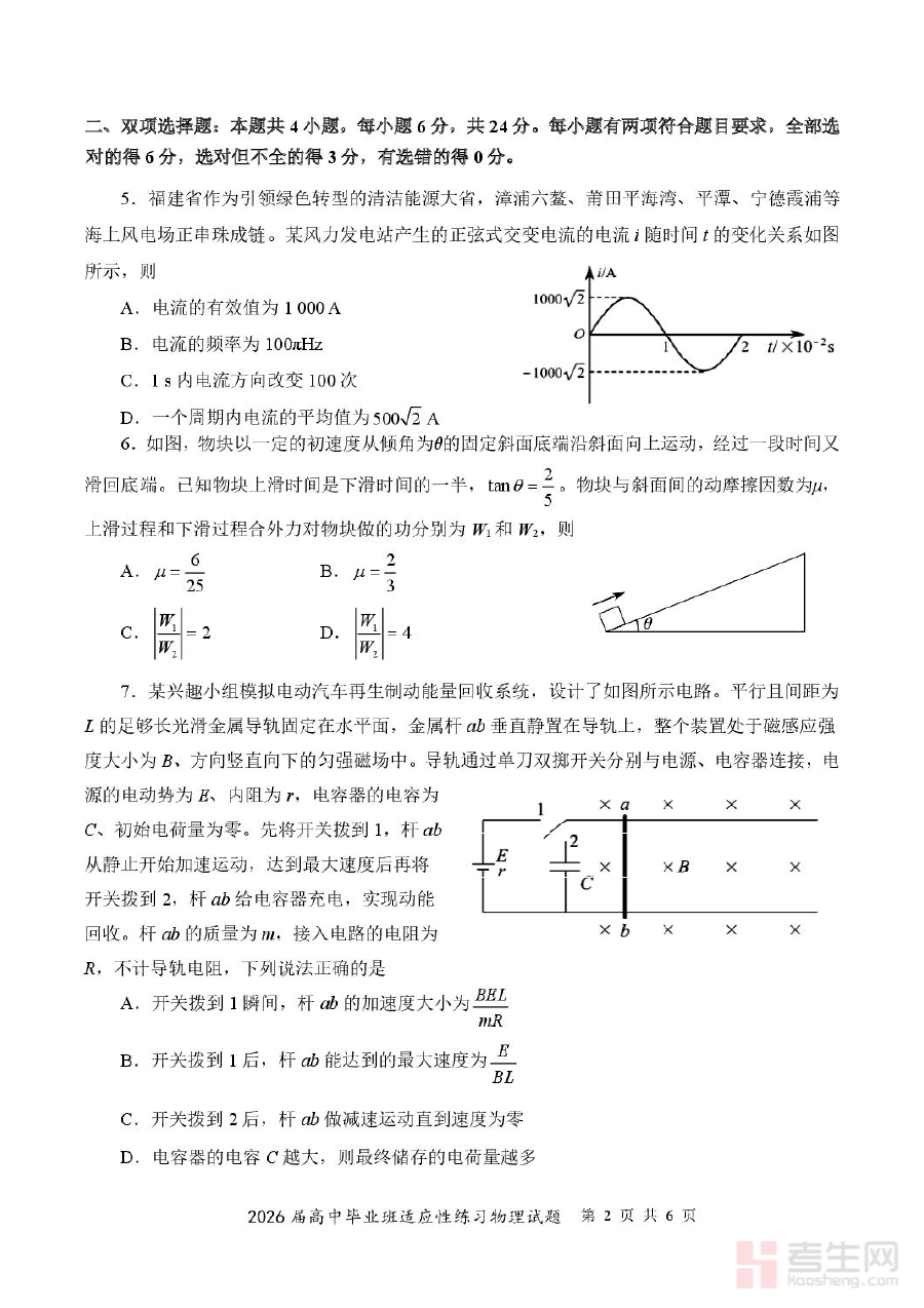 该试题的核心适用人群为2026届福建省高三物理学科学习者,同时也适用于从事高三物理教学的教师群体。对于学生而言,它是阶段性检测自身学习成果、提升应试能力的重要工具;对于教师而言,它可作为了解学生整体学习状况、制定个性化复习计划的参考依据,共同推动高考前关键阶段的高效备考进程。
