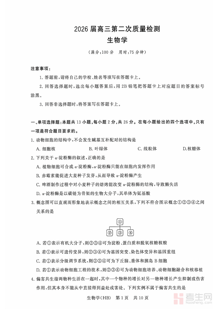 《八省T8联考2026届高三年级四月阶段练习 生物(HB)》是面向2026届高三学生的生物学科阶段性练习资料,关联八省T8联考这一重要区域性联合考试体系,针对湖北地区高三学生四月阶段的学习进度设计。作为区域联考体系下的阶段性练习,它承载着对高三生物学科阶段性学习成果的检验功能,是衔接高三中期复习与后续高考冲刺备考阶段的重要资料载体,能够反映区域联考的命题导向与考查重点方向。
