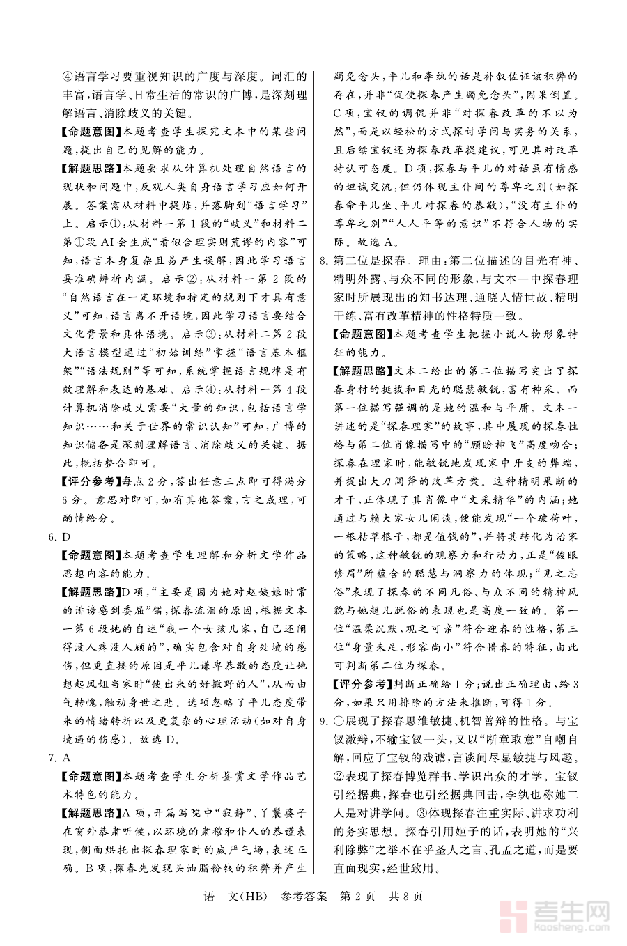 《八省T8联考2026届高三年级四月阶段练习 语文(HB)答案》是针对2026届高三学生参与的八省T8联考四月阶段练习语文科目的配套答案资料。该考试属于跨省域的联合阶段性检测,覆盖湖北等八个省份的高三年级群体,旨在通过统一命题标准与检测流程,为学生提供阶段性学习成果的客观参考,帮助学生把握自身在跨省域范围内的学习定位与进步空间。