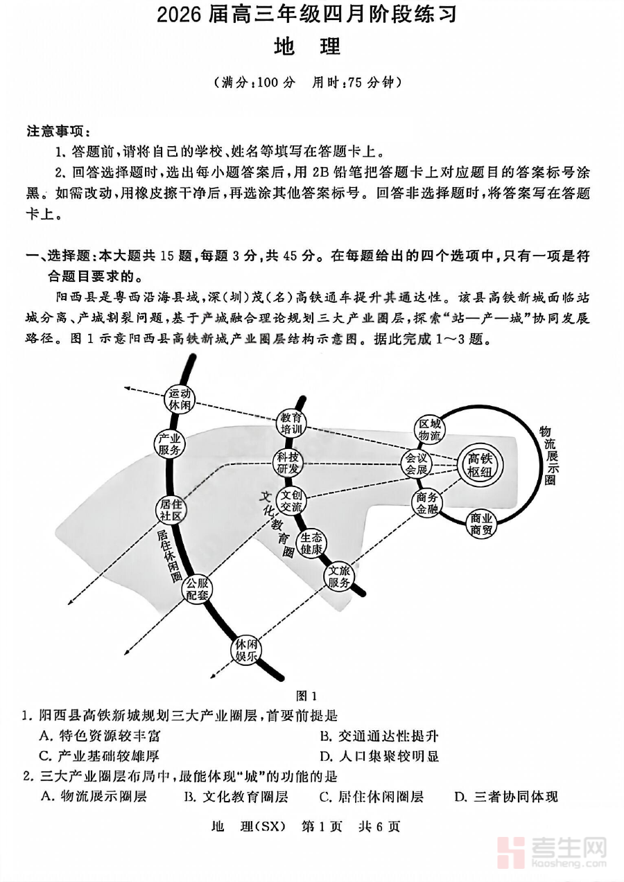 该资料核心用途在于支撑高三地理学科的学情诊断与备考规划工作,通过阶段性练习的形式,助力教师与学生精准识别当前学习阶段的知识掌握短板与能力盲区,为后续复习策略的调整提供客观依据。同时,它也可作为学生自主备考过程中的重要检测工具,帮助学生在备考周期内及时掌握自身学习动态,确保复习方向与联考要求保持一致。