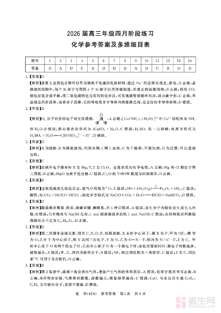 《河南T8联考2026届高三四月阶段练习化学答案》是针对河南省T8联考体系下2026届高三学生四月阶段练习的化学科目配套答案资料。该资料与河南T8联考四月阶段练习的化学试卷直接对应,旨在为考生和教学者提供该阶段练习的标准化参考依据,是高三化学阶段性学习成果验证的重要辅助材料,能够帮助使用者快速获取练习结果的准确反馈,确保对阶段学习情况的清晰认知。