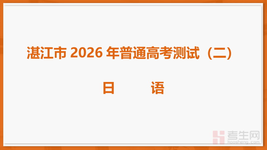 《26届4月湛江高三二模·日语》是面向2026届湛江地区高三学生的日语学科第二次模拟考试相关备考资料,紧密契合当地高三日语教学进度与区域考试要求,能够客观反映该阶段学生日语学科的知识掌握程度与语言应用能力水平,为后续备考方向的精准调整提供重要参考依据。