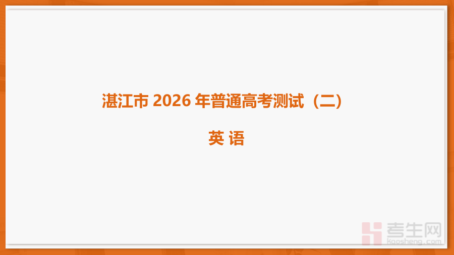 《26届4月湛江高三二模·英语》是面向2026届湛江地区高三学生的英语学科第二次模拟考试专用备考资料,其命题设计紧密结合当地高考英语的考查要求与教学实际,能够精准反映湛江地区高三英语教学的阶段性目标与考查重点,为学生提供与本地考情高度契合的实战训练资源,帮助学生提前适应模拟考试的节奏与形式。