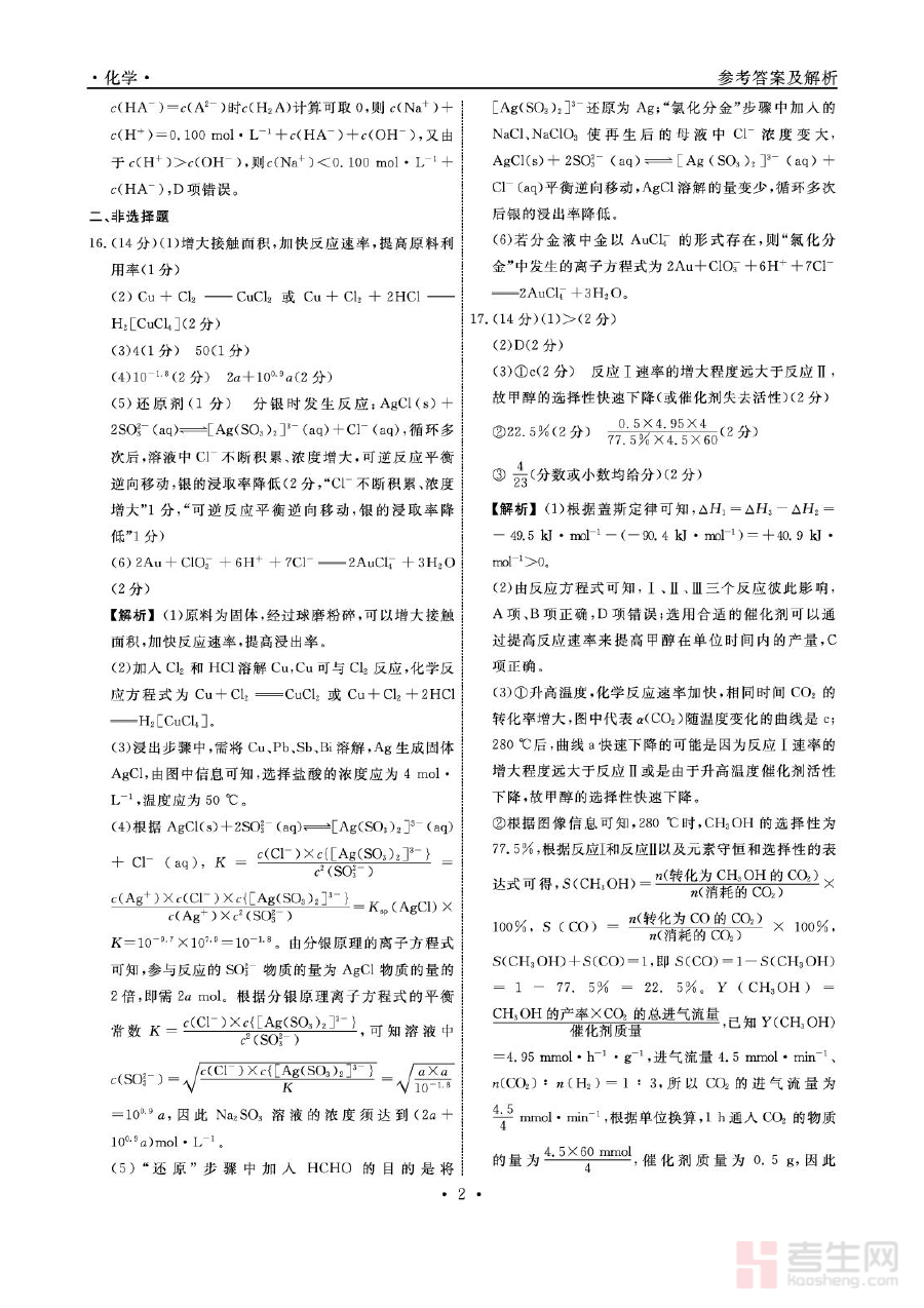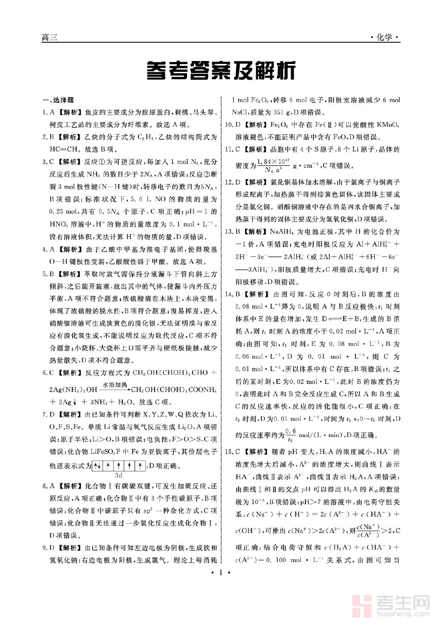 该资料可用于学生对自身化学学科知识掌握情况进行精准学情诊断,帮助教师了解班级学生在化学学习中的整体进度与共性薄弱环节,为后续的备考规划与教学策略调整提供客观数据支持,同时也能让学生通过核对答案明确自身答题过程中的问题与不足,从而更有针对性地调整学习方向与复习重点。