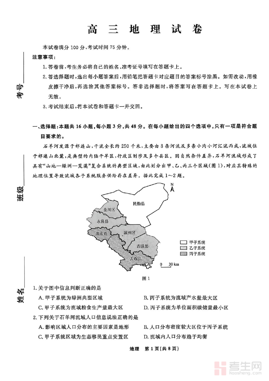 作为高三下学期关键阶段的模拟测试资料,该试题可用于考生进行阶段性学情诊断,帮助其清晰把握自身在地理学科核心知识与能力维度的掌握状况,及时发现学习中的薄弱环节;同时也为教师提供教学效果评估的重要参考,便于教师根据测试结果调整后续复习计划与辅导策略,增强备考的针对性与有效性,推动复习进程更贴合学生实际需求。
