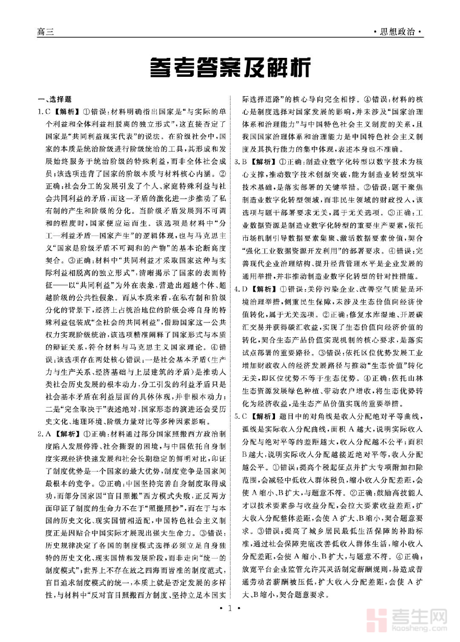该资料的核心用途在于辅助高三学生进行学情诊断与自我评估,帮助学生发现政治学科学习中的薄弱环节;同时为教师提供客观的教学反馈数据,支持教师针对性调整教学计划与备考策略;此外作为阶段性联考的配套资料,它能让学生熟悉联考的命题特点与答题要求,提升应试技巧与时间管理能力。
