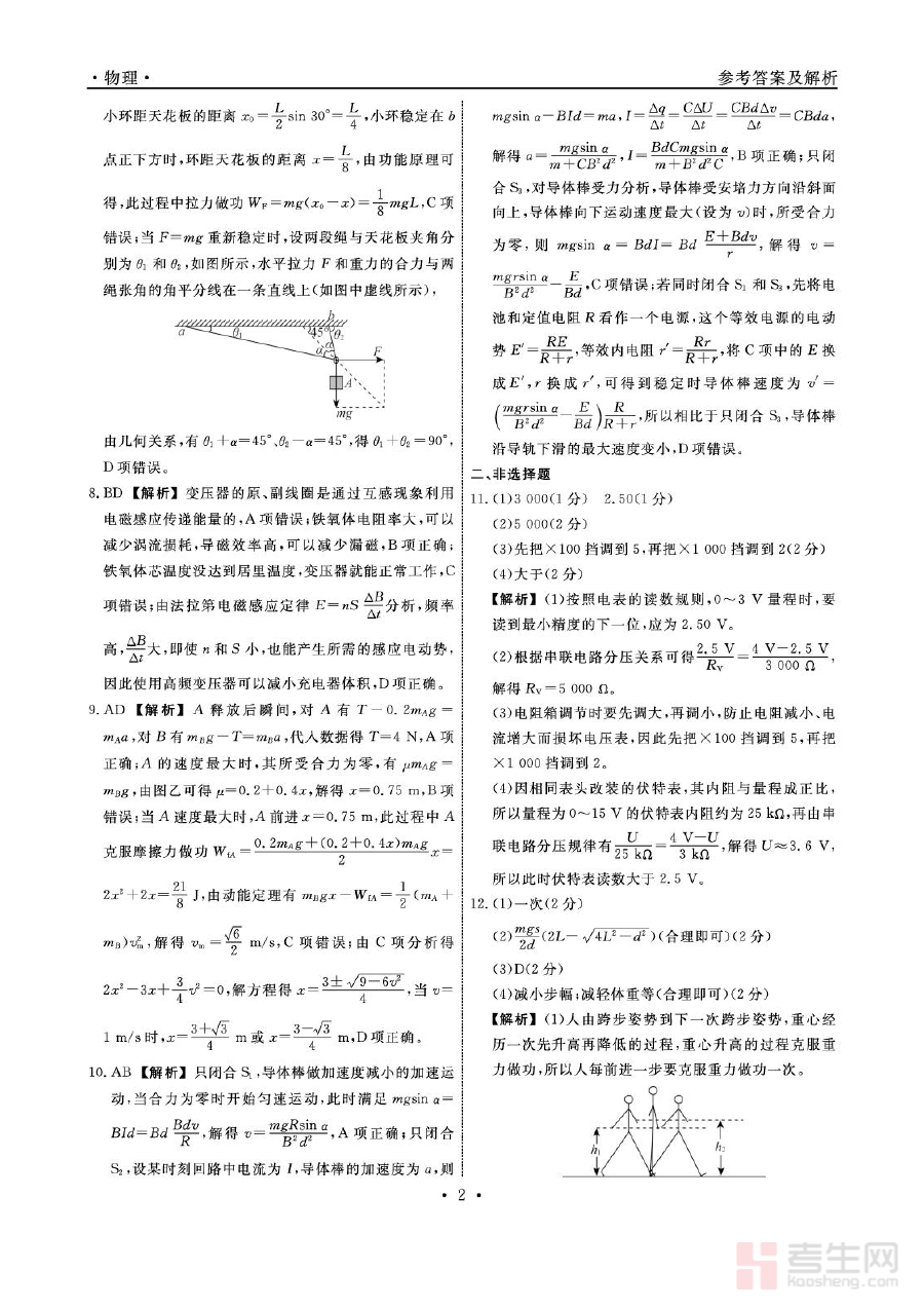 作为模拟考试的答案资料,它能够帮助考生在完成测试后快速验证作答情况,及时发现自身在物理知识掌握、解题方法运用等方面的薄弱环节;同时也为教师提供学情分析的参考,便于教师根据学生的作答表现调整教学策略与备考指导方向;此外还可辅助考生进行自我评估,为后续复习计划制定提供数据支持。
