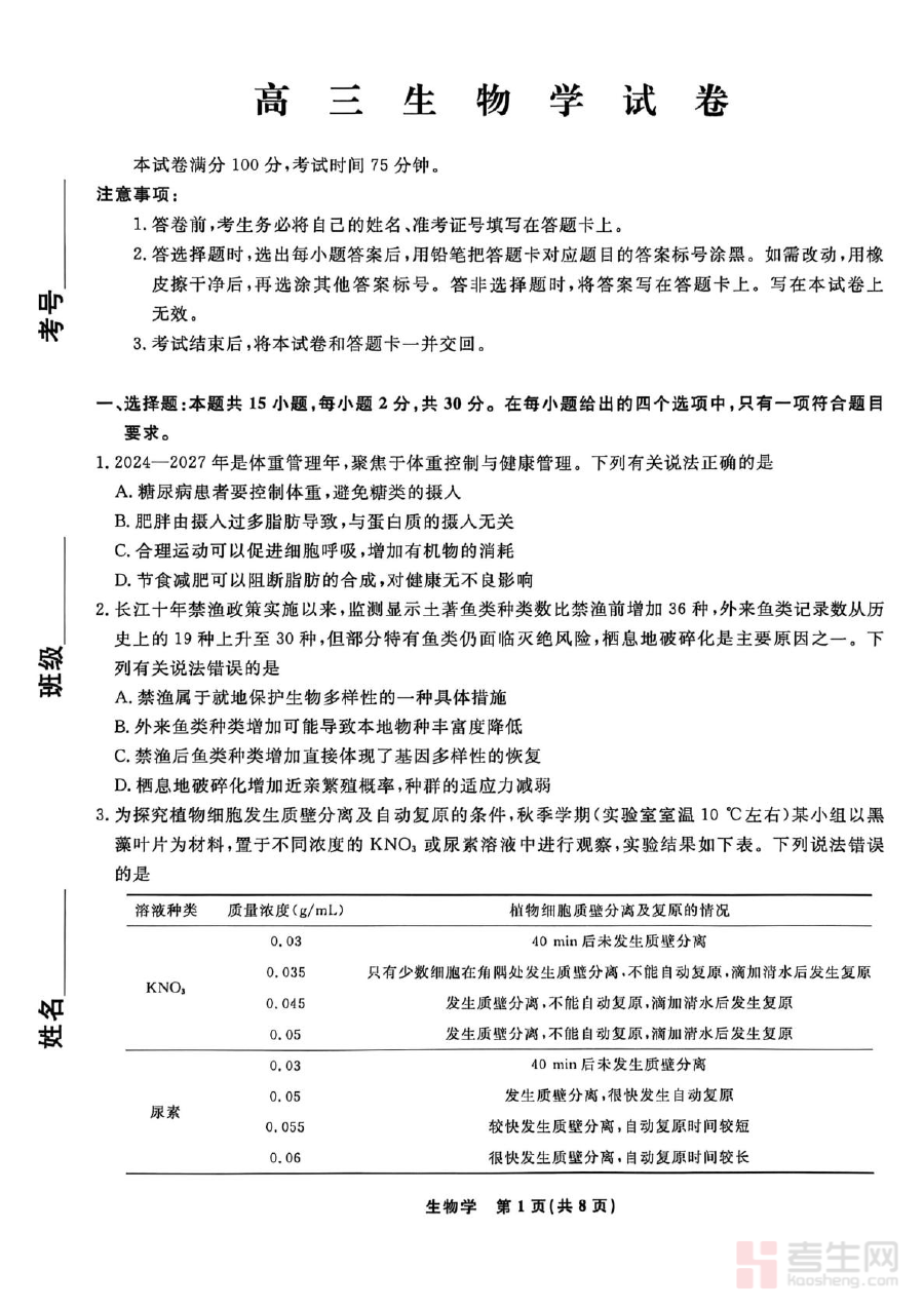 该资料主要用于高三生物学科的阶段性学习效果检测与学情诊断工作,能够帮助师生精准识别当前复习过程中存在的知识漏洞与能力短板,为后续制定个性化复习计划、调整备考策略提供可靠依据,同时也能让学生提前适应高考生物考试的题型结构与答题节奏,提升应试状态下的心理素质。