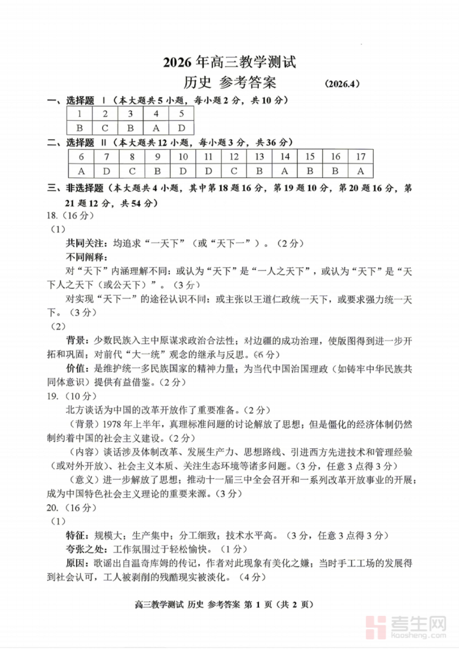 这份资料的核心用途在于辅助学情诊断与备考规划。对于考生而言,通过对照答案可以快速定位自身在历史知识掌握、答题逻辑构建以及得分要点把握等方面的不足;对于教师来说,它能帮助梳理班级整体在历史学科各模块的掌握情况,识别普遍存在的问题,为后续调整复习重点、优化教学方法提供数据支持,从而提升备考指导的精准度与有效性。