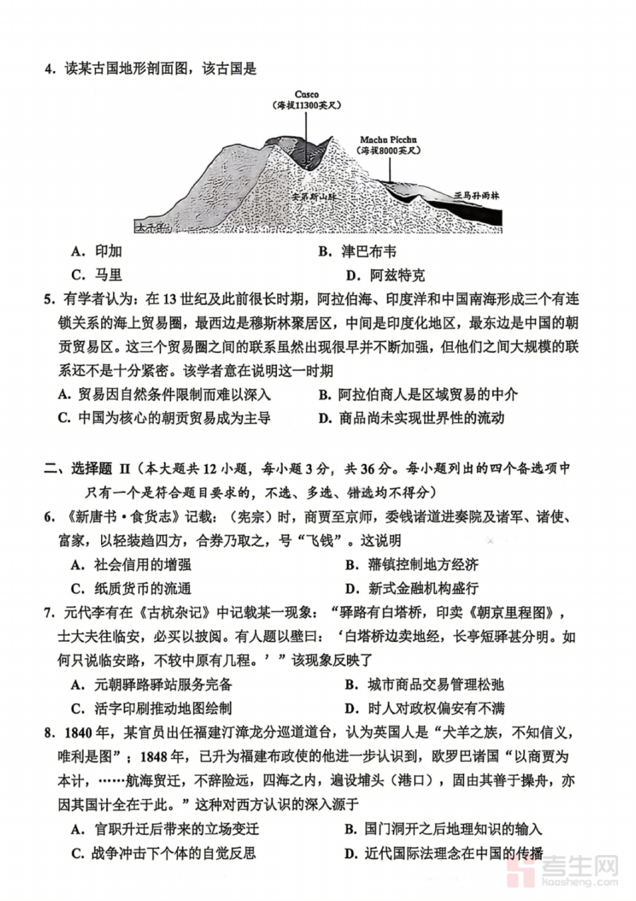 该试题主要适用于嘉兴地区及周边同类教学水平的高三历史考生、一线历史教师及教研人员。对于考生而言,通过完成试题可熟悉模拟考试节奏,提升应试技巧与时间管理能力;对于教师而言,借助试题结果能更科学地制定教学计划与辅导方案,助力学生高效备考,为最终高考历史学科取得优异成绩奠定坚实基础。