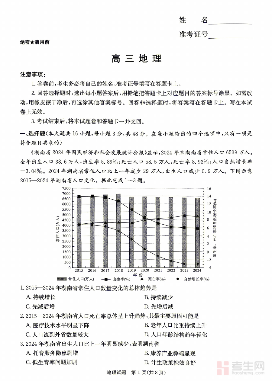 该试题适用于2026届湖南省高三地理学科的学生,也可作为地理教师开展教学评估与备考指导的重要参考工具。通过参与此次联考并使用该试题,学生能够提前熟悉高考地理的题型结构与考查要求,增强应试适应性与解题能力;教师则可借助试题结果优化教学方案,更有针对性地助力学生备战高考。