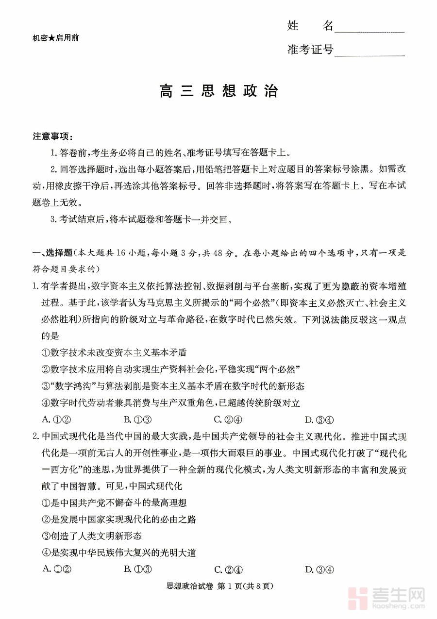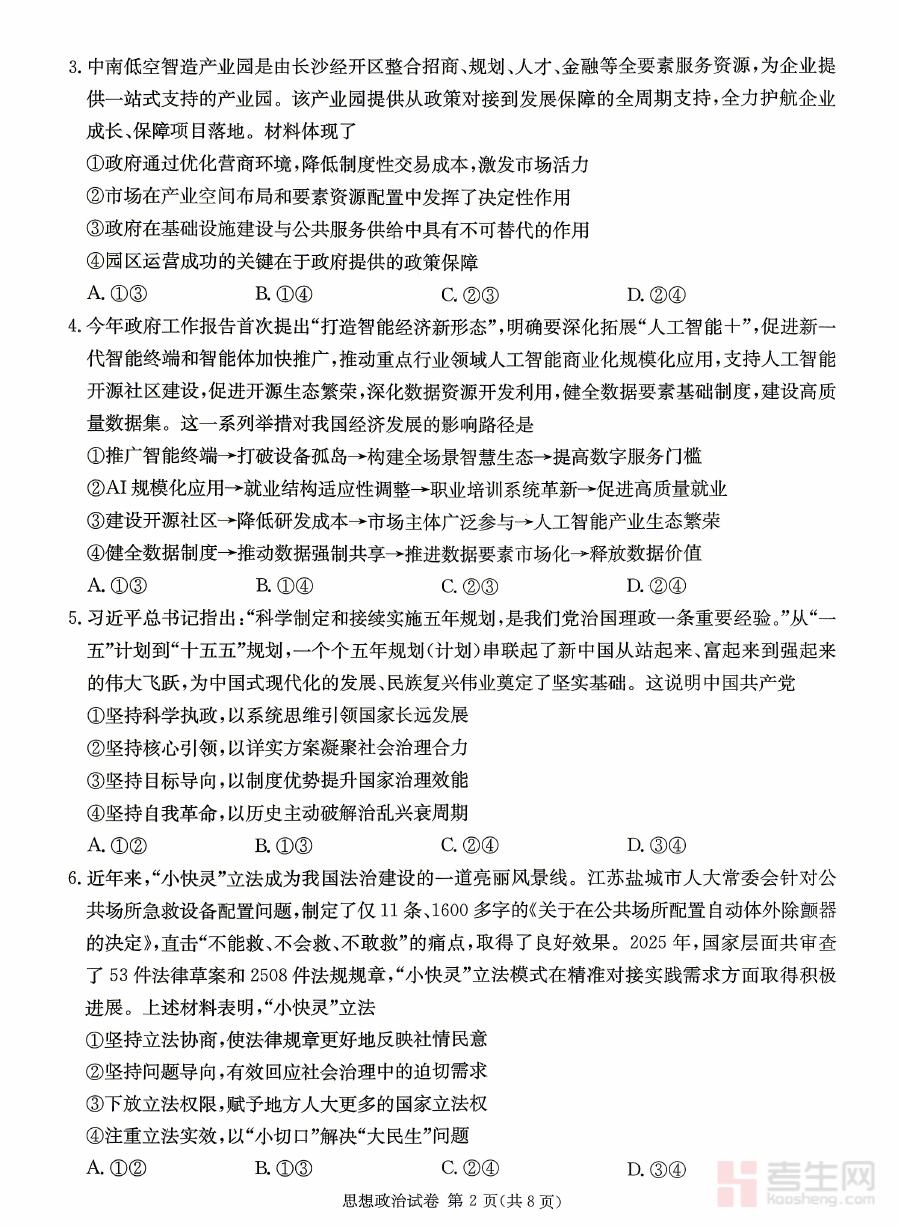 《新高考教学教研联盟(长郡二十校)高三下学期4月第二次联考 政治》是新高考背景下,由长郡二十校组成的教学教研联盟组织的高三阶段联考相关政治学科资料。该资料对应高三下学期4月的第二次联考场景,面向联盟内二十所学校的高三学生,是针对新高考政治学科备考的阶段性参考资料,能够体现该阶段联盟内学校政治学科的教学与备考动态,为师生提供贴合区域教研方向的备考依据。